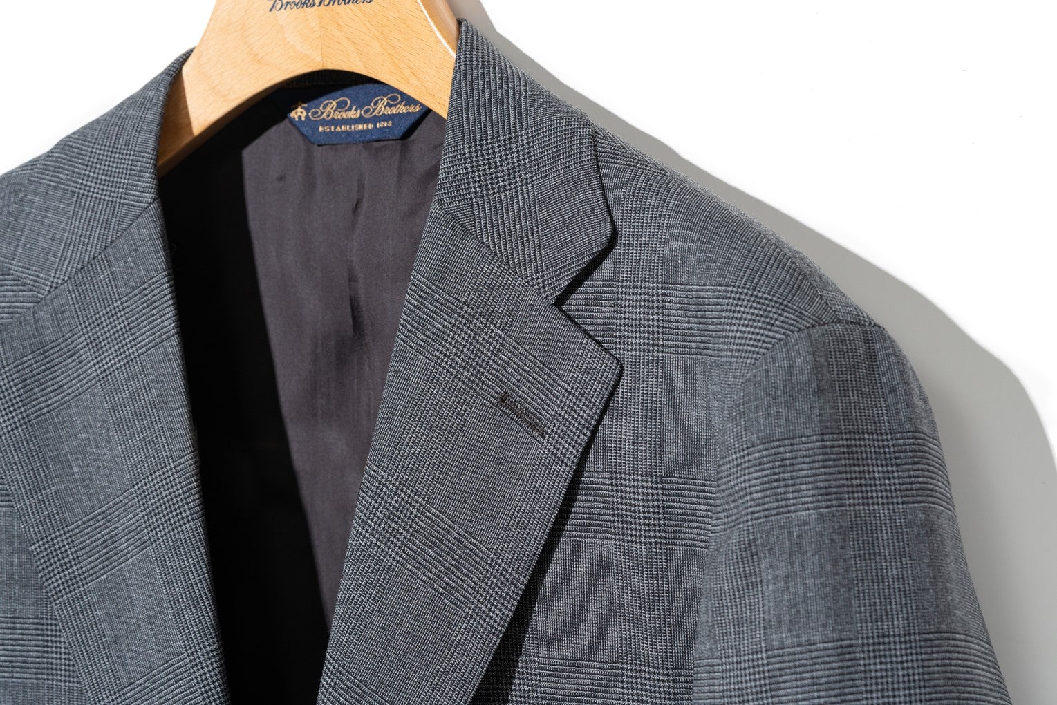 身頃は3つボタン段返りにフロントダーツが入る仕様。実はこれまでのブルックス ブラザーズにほとんど存在していなかった組み合わせで、従来は3つボタンにはダーツなし、2つボタンにはダーツありというスタイルでした。アメリカの伝統を継承しつつ、ウエスト周りをすっきり見せるのが特徴です。