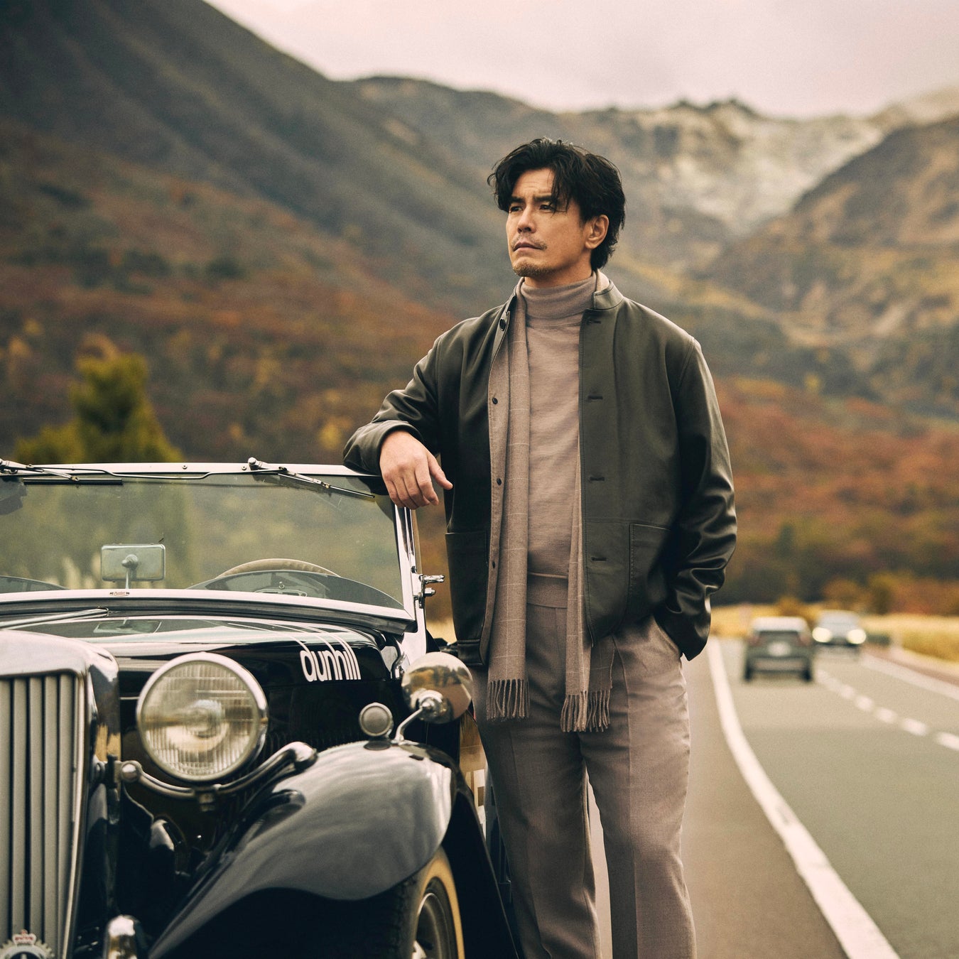 「私にとって車のスタイルの原点は映画です。スクリーンの中で車と向き合う男たちに憧れ、車だけでなく、その空気感や背景の物語まで含めて魅力を感じてきました。ファッションや装備も含めて“スタイルごと楽しむ”という感覚は、まさにモートリティーズの精神そのものだと思います。今回着たダンヒルの服も、袖を通すと自然と気持ちが引き締まる感覚があるんです。単なる服ではなく、クラシックカーを楽しむための“装備”から着想を得ていることを実感しましたし、大人の車の楽しみ方に気づかされました。」