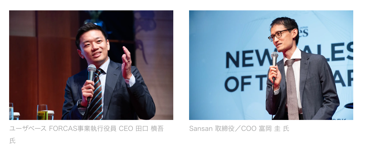 また「営業職の未来像」をテーマにしたトークセッションも実施し、ユーザベース FORCAS事業執行役員 CEO 田口 槙吾氏、Sansan 取締役/ COO 富岡 圭氏らが登壇しました。