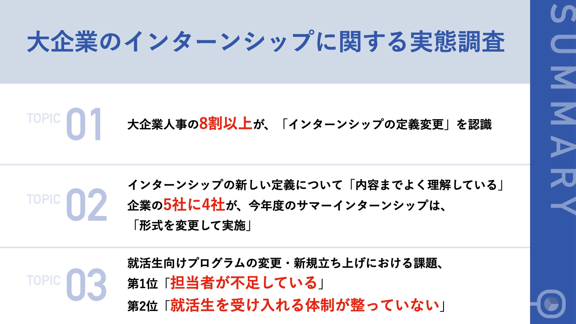 【インターンシップ新定義への対応について調査】大企業人事の8割以上が「定義変更」を認識!内容を理解する企業の5社に4社は25卒向けプログラム形式を「変更して実施」
