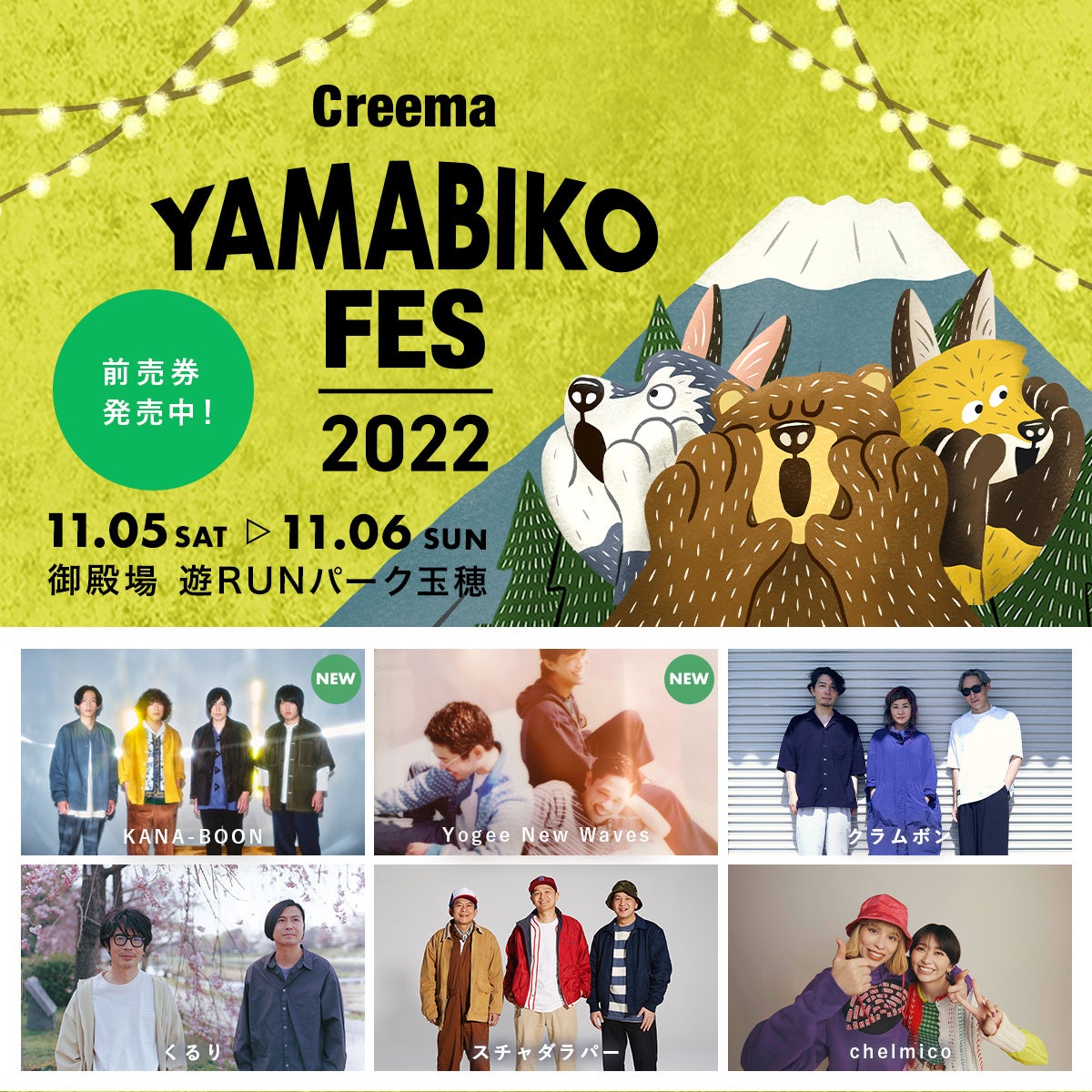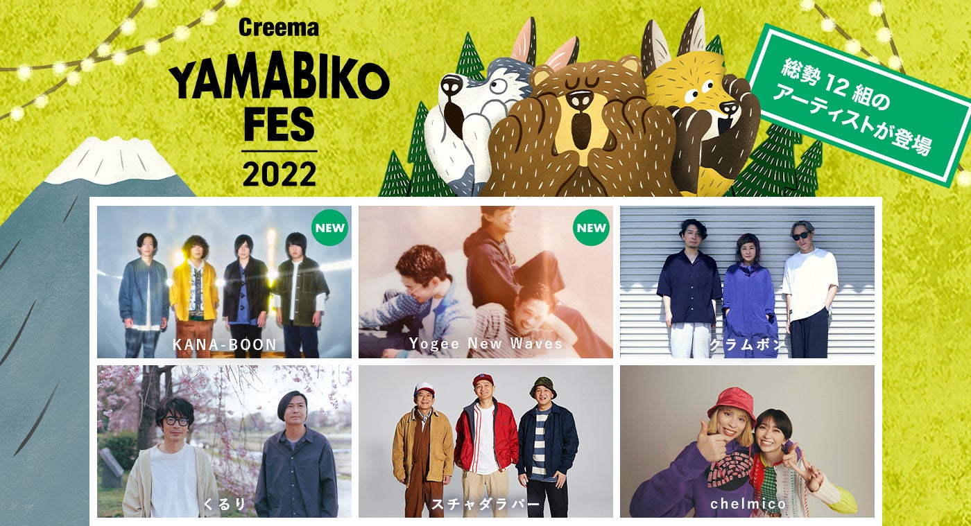 音楽とクラフトの野外フェスティバル「Creema YAMABIKO FES 2022」、第二弾アーティスト発表!KANA-BOON、Yogee New Wavesら3組の出演が決定