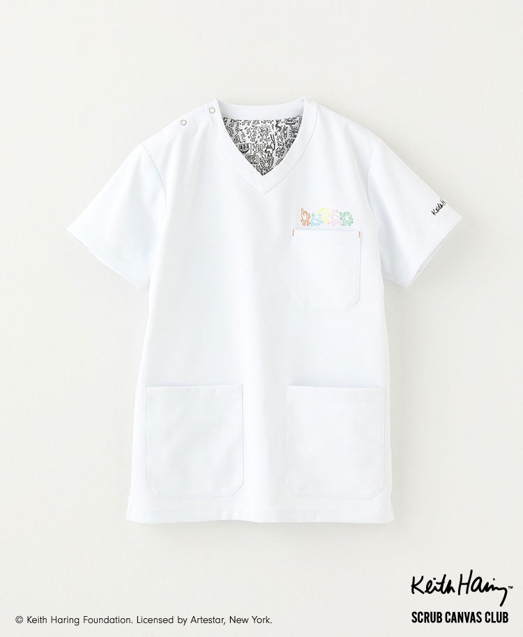 商品名:Scrub Canvas Club:Keith Haringスクラブトップス・パンツ(男女兼用)