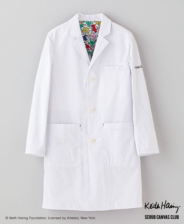 テーラード技術を取り入れた白衣を中心に、メディカルアパレルの企画・開発・販売を行うクラシコ株式会社【創業:2008 年 / 所在地:東京都港区 / 代表取締役 CEO:大和 新(おおわ あらた)】は、1980年代のアメリカを代表するアーティスト:キース・ヘリング(Keith Haring, 1958–1990)の作品を配した白衣とスクラブを発売いたします。