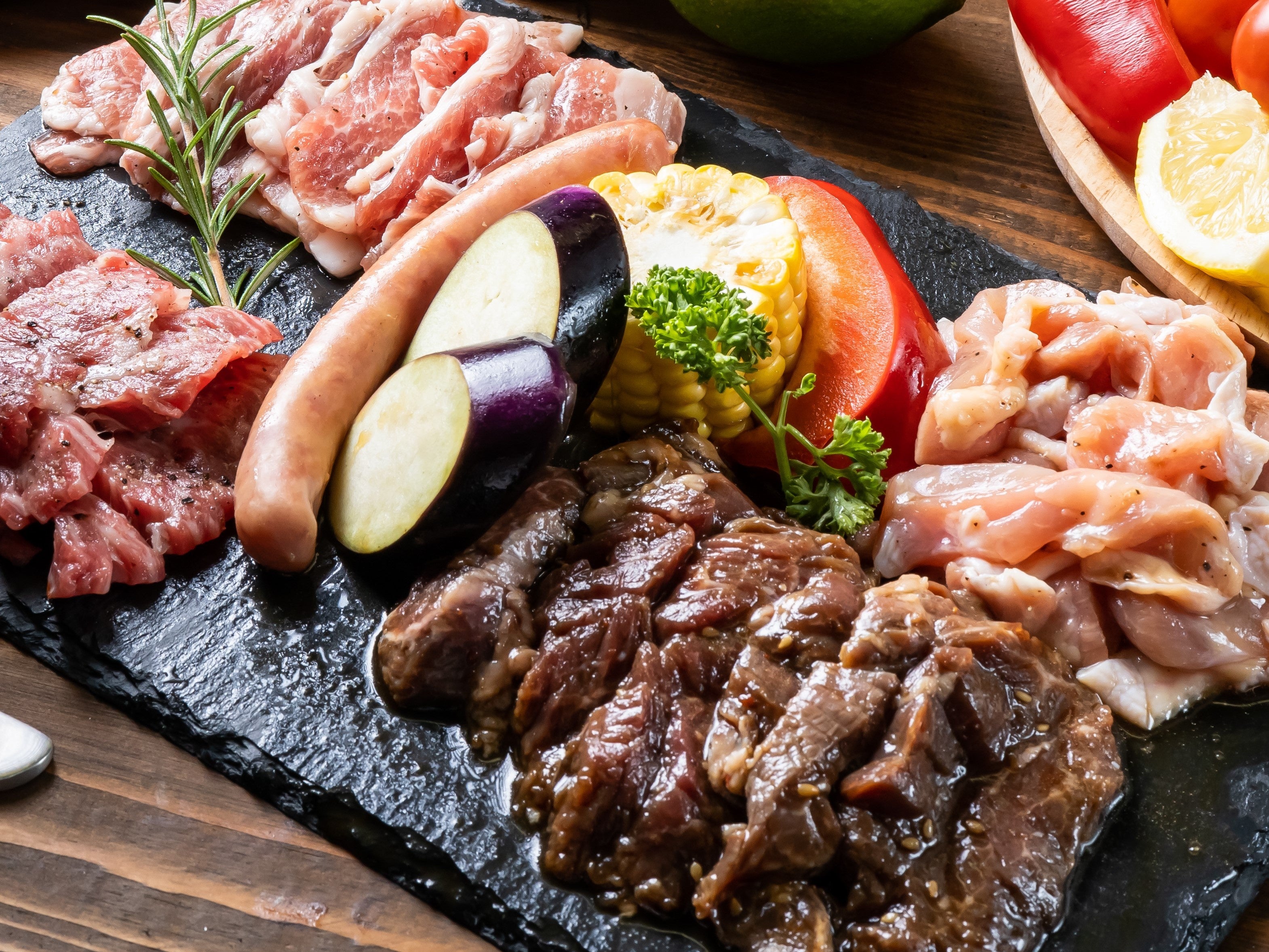 牛さがり・千代千里豚(ロース・モモ・バラ)・信州ハーブ鶏モモ・ソーセージ・焼き野菜