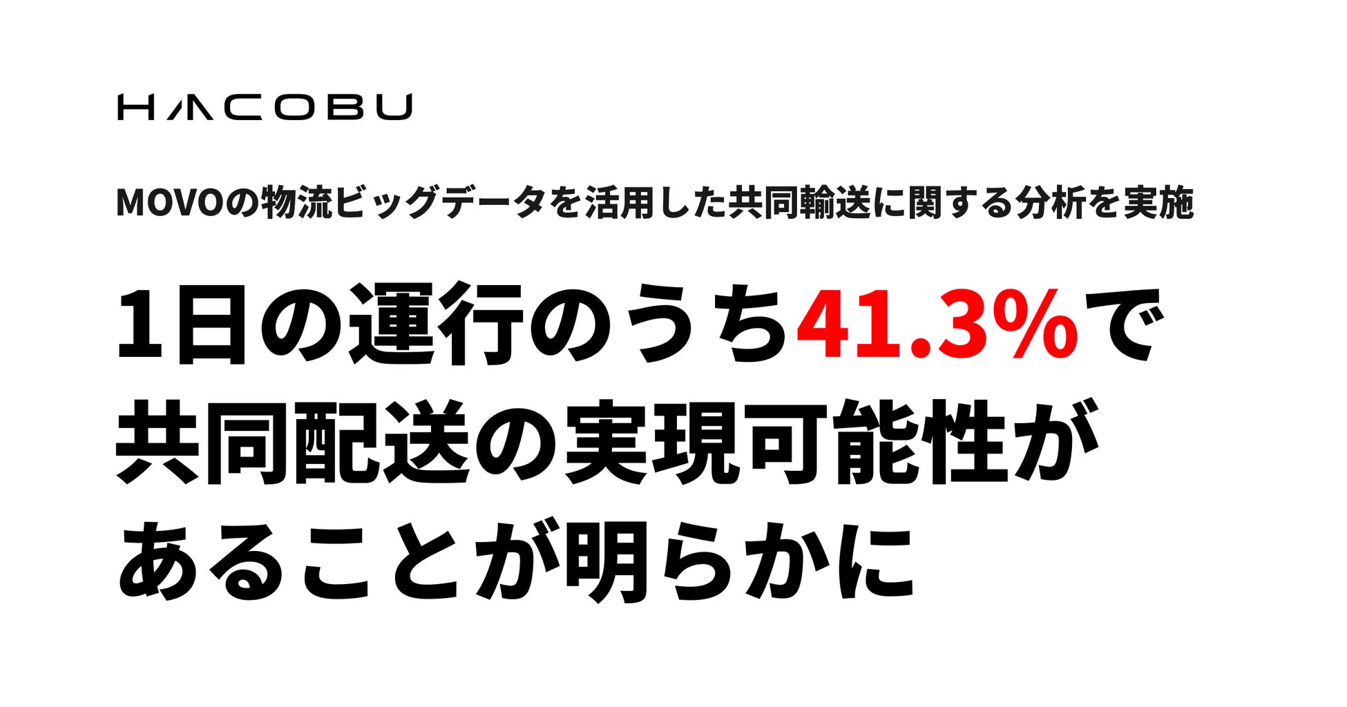 MOVO(ムーボ)の物流ビッグデータから、1日の運行のうち41.3%で共同配送の実現可能性があることが明らかに