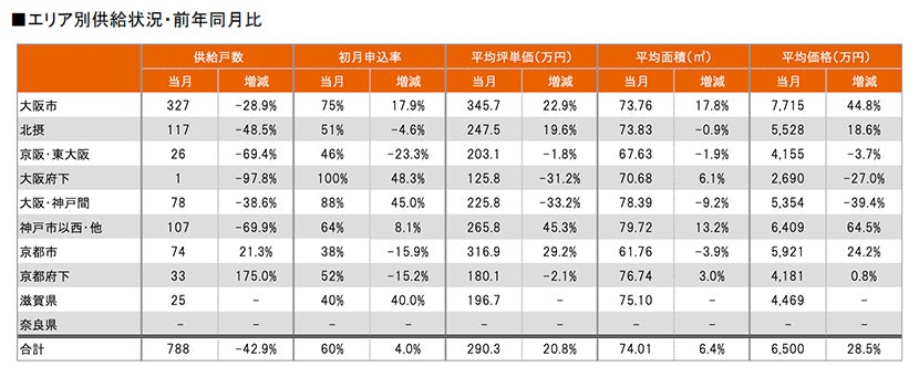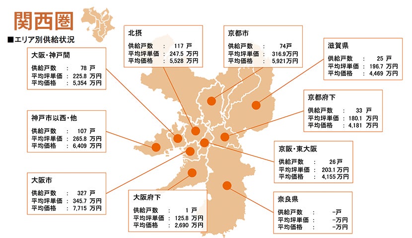 集計対象エリアは首都圏及び関西圏となっており、それぞれのエリア別相場情報、需給動向、