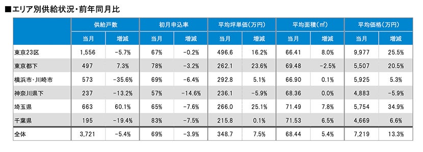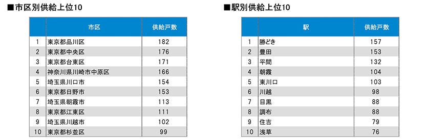 着工件数等を集計しました。また、前年同月における比較や市区別、駅別の供給ランキング等も算出しました。