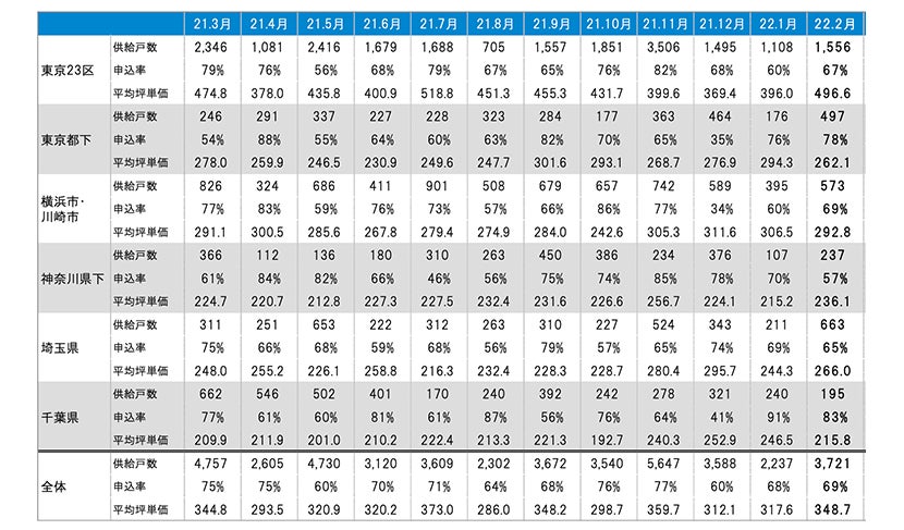 月例新築マンション動向発表~一都三県で平均坪単価が前年同月比7.5%上昇(2022年2月度 分譲実績)|2022年5月号~