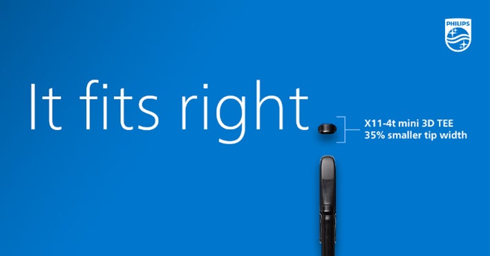 「It fits right.」をコンセプトに、従来のトランスジューサX8-2tよりもチップ幅が35%縮小した細径の3D経食道トランスジューサX11-4tをリリースします。X11-4tは循環器領域を代表する超音波診断装置ポートフォリオ に搭載され、高画質の3D画像を提供します。