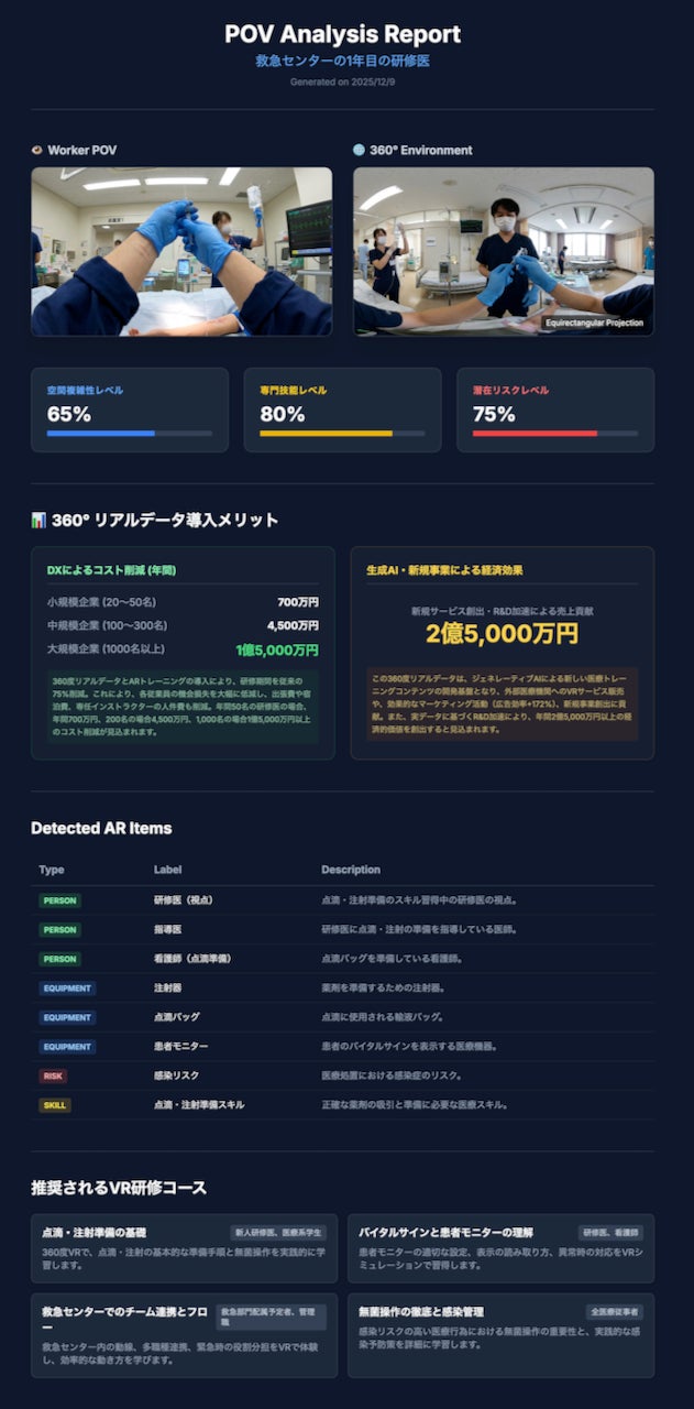 株式会社ジョリーグッド(本社:東京都中央区、代表取締役CEO:上路健介、以下「ジョリーグッド」)は、AI時代における企業の真の差別化要因である「独自の教師データ」を、360度映像撮影とAI解析により構築・活用する産業共創プロジェクト「Multimodal AI Lab(マルチモーダルAIラボ)」を2025年12月に正式開設いたしました。あわせて、テキスト入力だけで職場の360度POV(当事者目線)映像をAI生成し、解析結果と経済効果まで可視化できる体験ツール「POVワールドジェネレーター v1.0」の無料公開を開始しました。