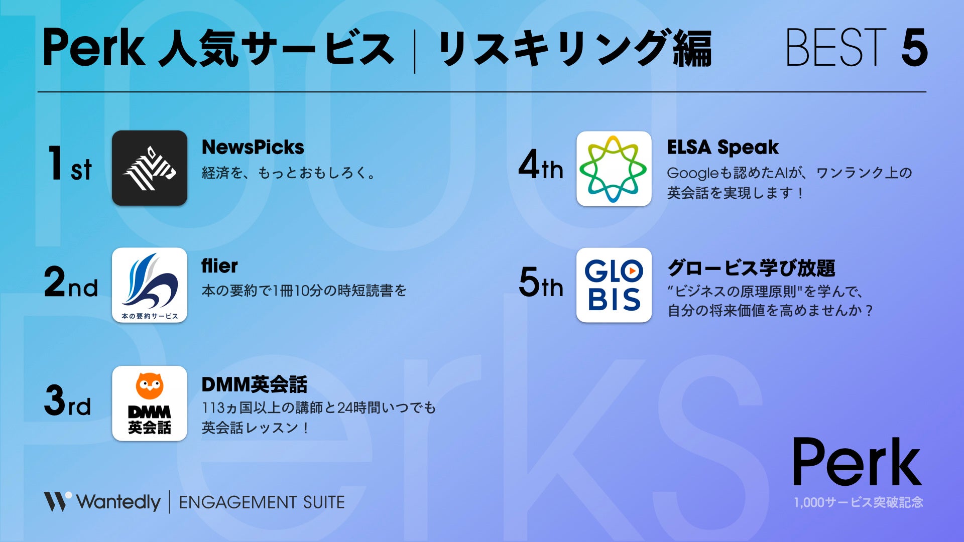 - Perk 人気サービスランキングを公開