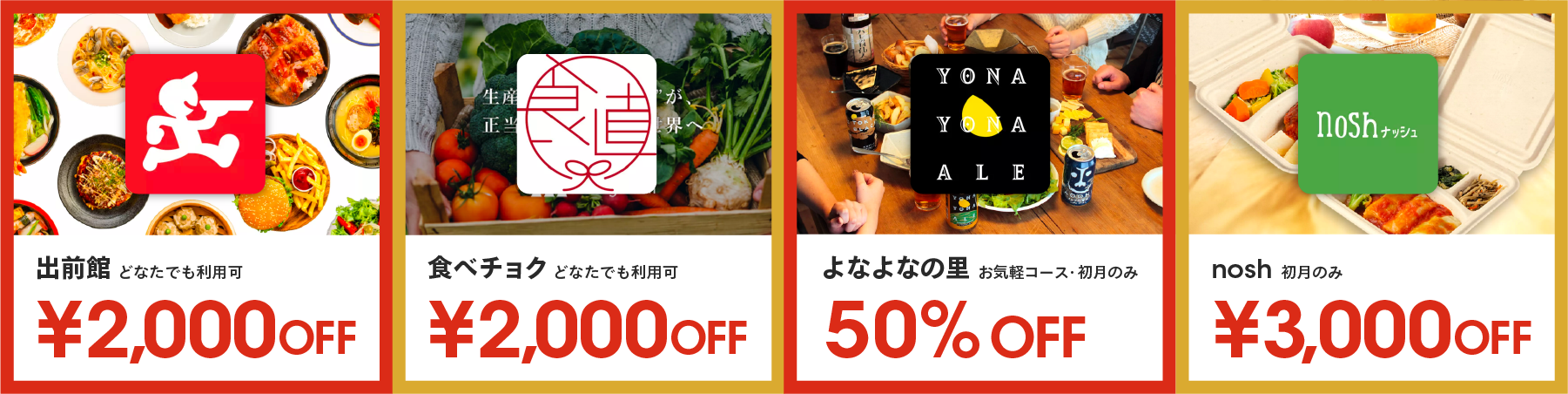 食べチョク、出前館、nosh、よなよなの里