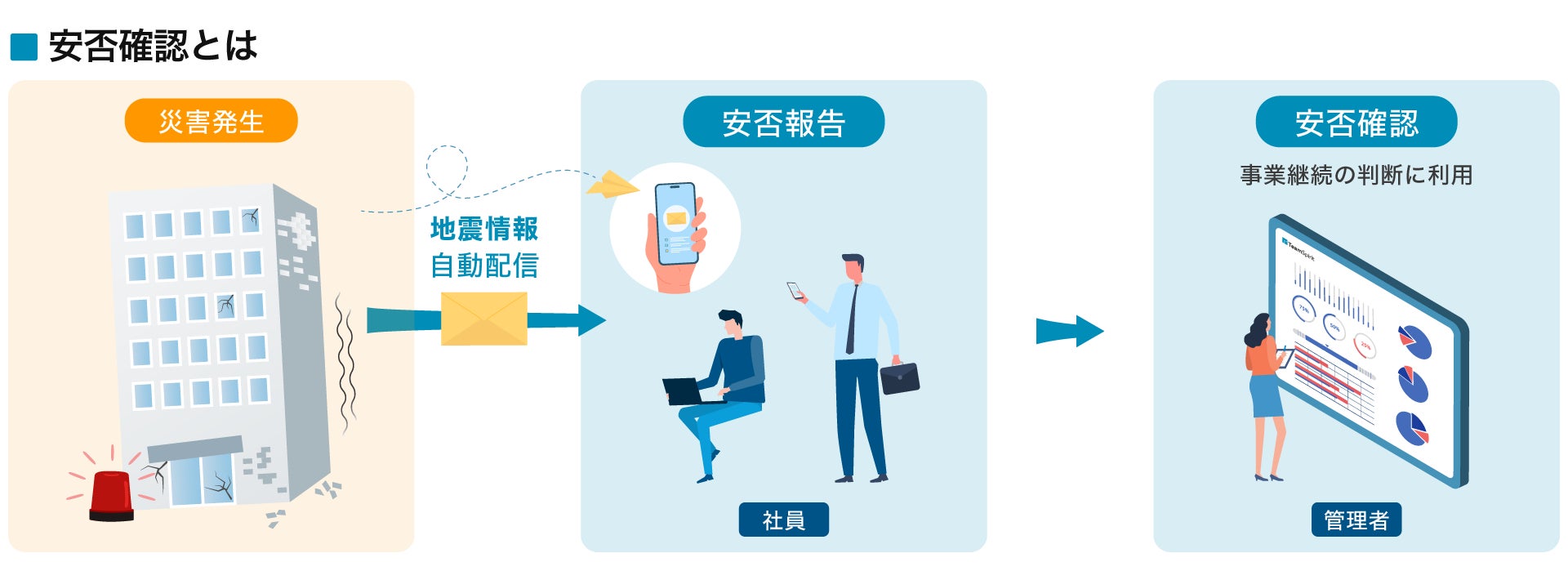 地震や台風、大雨といった自然災害などの緊急事態の発生時に、従業員や事業資産の安全確認を確実に行うことは、BCP(事業継続計画)対策や安全管理の観点から、非常に重要視されています。電話やメールなどの分散した連絡手段では、通信障害や混雑による確認漏れが発生するリスクがあり、手作業による安否状況の収集や確認は、管理職や人事労務などの管理部門において大きな負担となります。また、システム導入企業においても、年1回程度の訓練時にしか利用しないシステムのため、緊急時にログインができないなどの問題もたびたび発生しています。