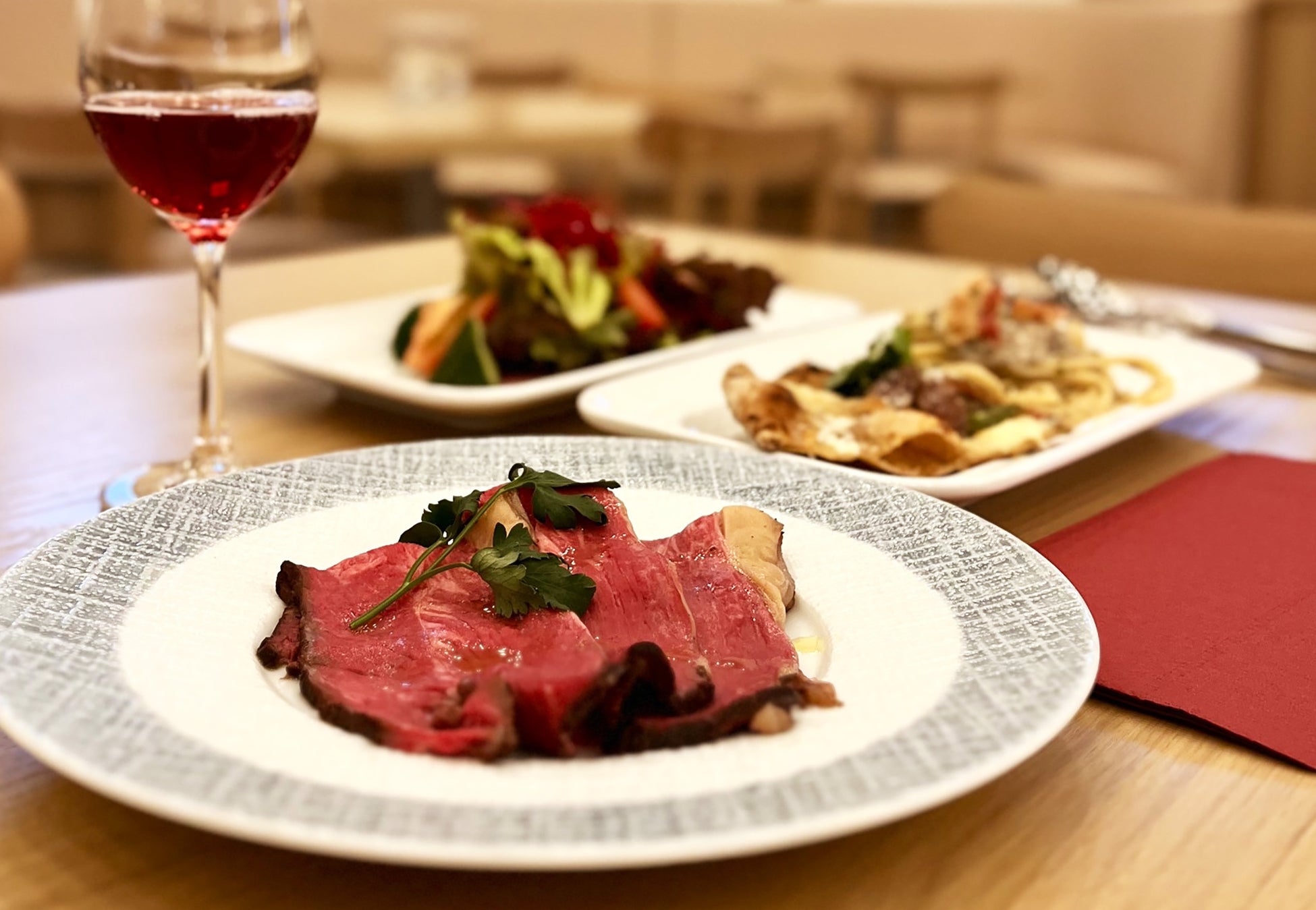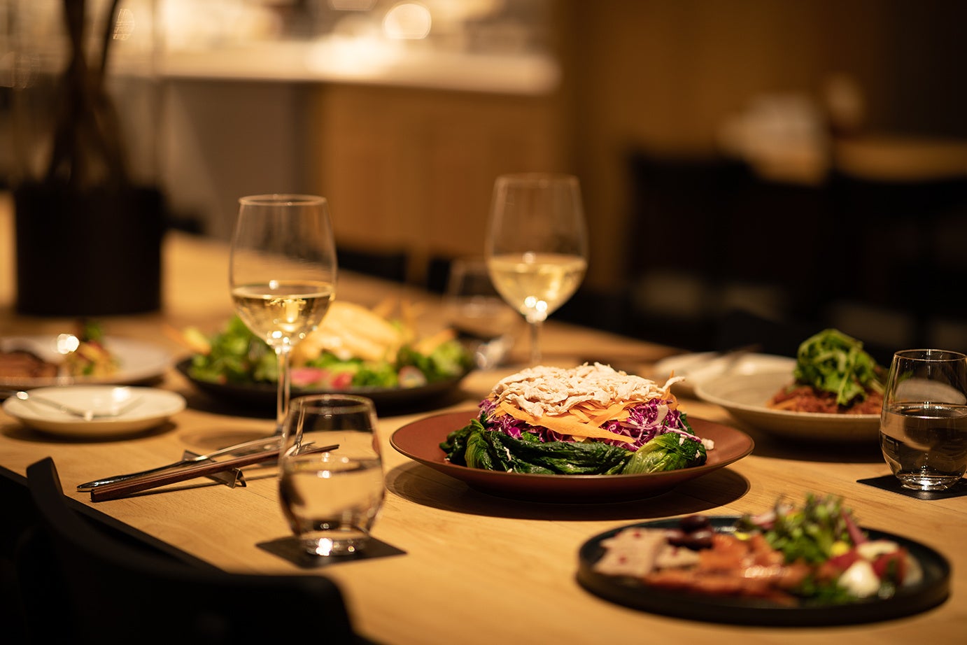 「レストラン」では、イベント限定のディナービュッフェをご用意。シェフが目の前で切り分けるローストビーフや鯛のカルパッチョ、窯焼きの自家製ピザなどをビュッフェスタイルでご提供するほか、レストラン内で行う生演奏もご用意し、クリスマス気分を盛り上げます。
