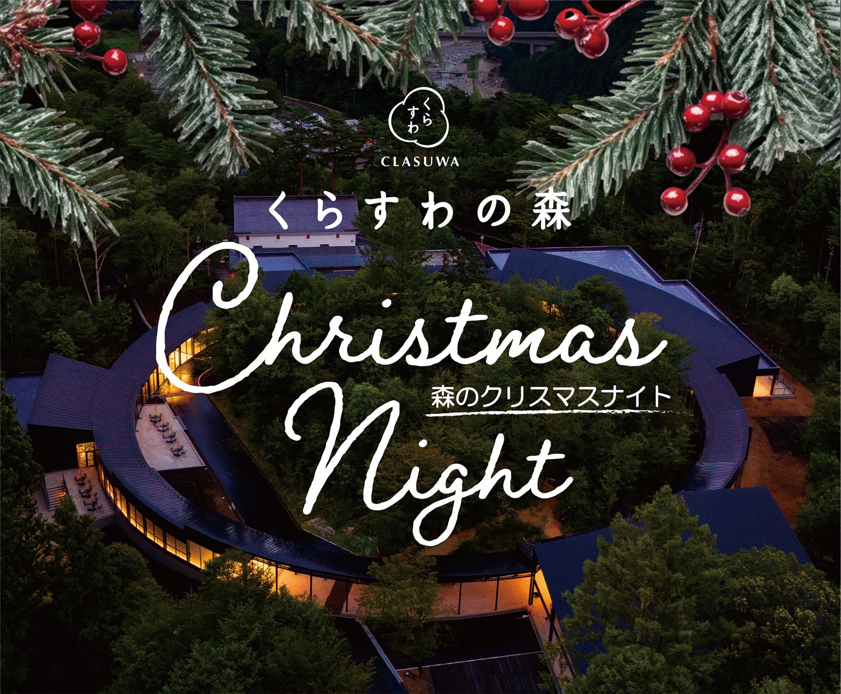養命酒製造株式会社(本店:東京都渋谷区 代表取締役社⾧COO 田中英雄)がプロデュースするライフスタイルブランド「くらすわ」は、2024 年10 月に⾧野県駒ヶ根市にグランドオープンした体験型複合施設『くらすわの森』にてクリスマスイベント「森のクリスマスナイト」を2024 年12 月20 日(金)~22 日(日)の3 日間限定で開催いたします。グランドオープン後初めての夜間営業を実施し、ライトアップされ、いつもとは異なる表情を見せる『くらすわの森』で、クリスマス限定のスペシャルメニューのご提供やレストランでの生演奏など、ホリデーシーズンを彩るコンテンツをご用意いたします。