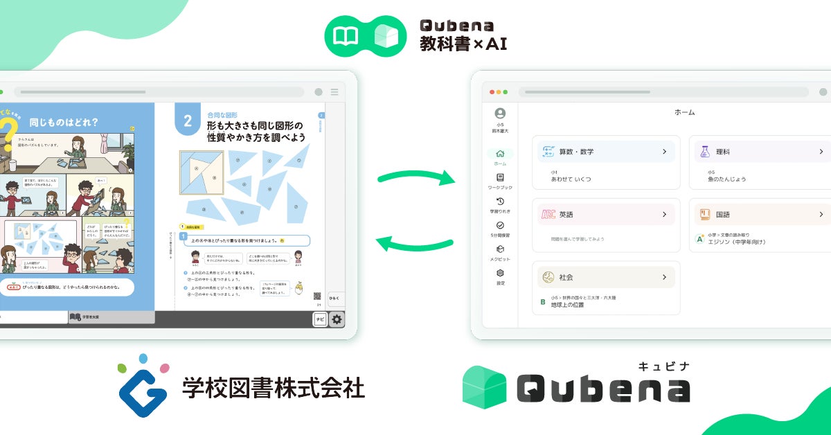 株式会社COMPASS(本社:東京都文京区、代表取締役:佐藤 潤、以下 COMPASS)はこのたび、提供する学習eポータル+AI型教材「キュビナ」と、学校図書株式会社(本社:東京都千代田区、代表取締役社長:橋本 和夫、以下 学校図書)が提供するデジタル教科書との連携において、アプリケーション間の相互連携機能を実装いたしましたことをご報告いたします。またその機能を使用し、かねてよりキュビナを導入いただいている東京都町田市内の市立小学校にて、デジタル教科書とAI型教材の連携による学習効果に関する実証を実施してまいります。