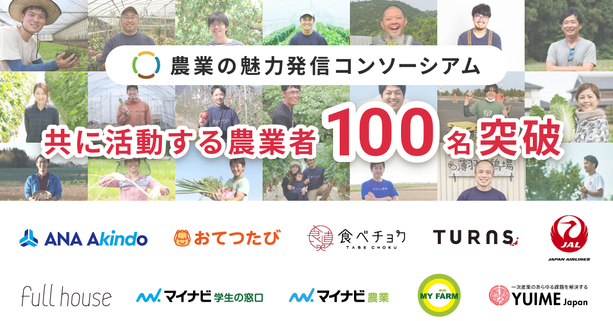 合計9社となる本コンソーシアムは、農業の後継者不足という課題に対し、ロールモデルとなる全国の生産者の魅力を伝えていくことで農業に関心を持つ若手を増やしていくことを目的としています。設立から約3か月で情報発信する生産者の数は100名を突破しました。