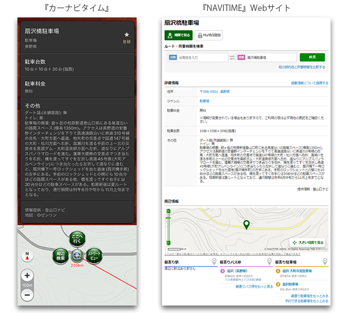 〜登山口の情報も加わり、全国の様々な種類の駐車場に対応~