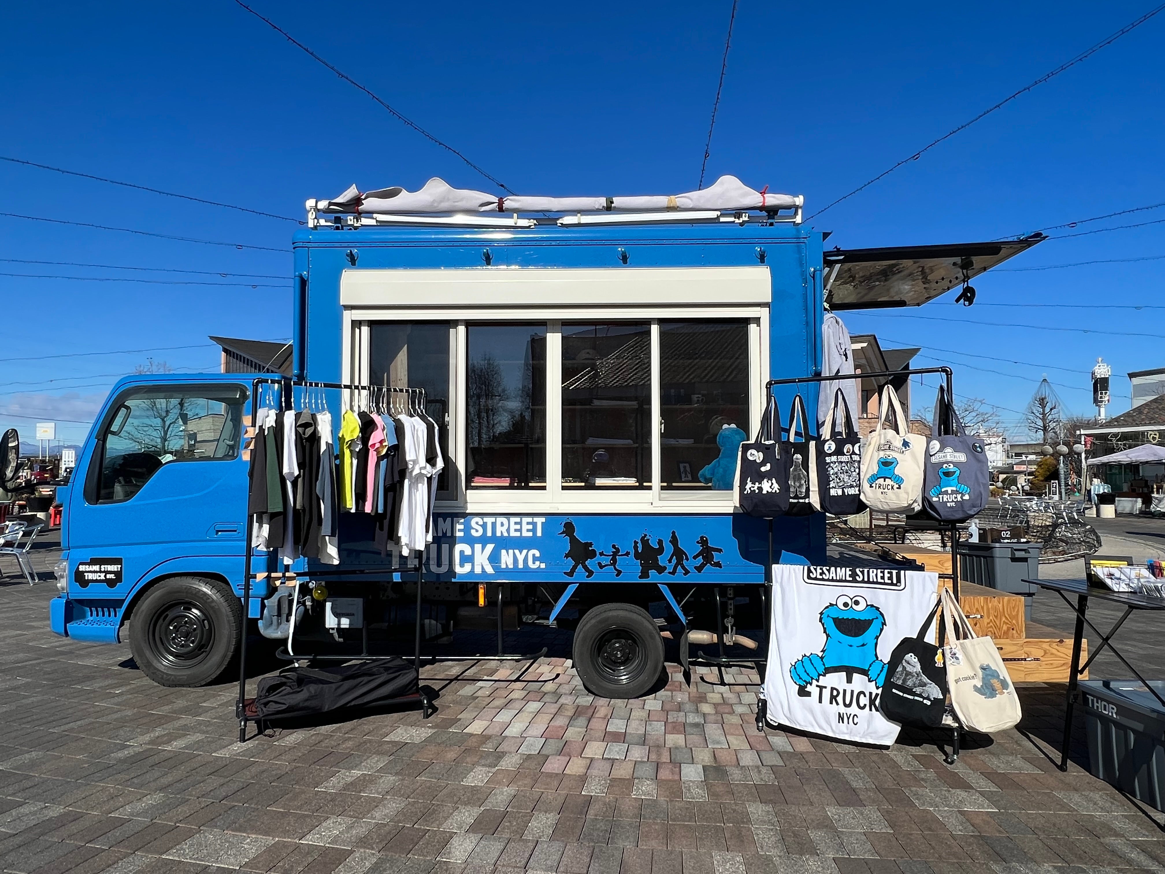セサミストリートグッズを沢山乗せたセサミストリートトラックが、