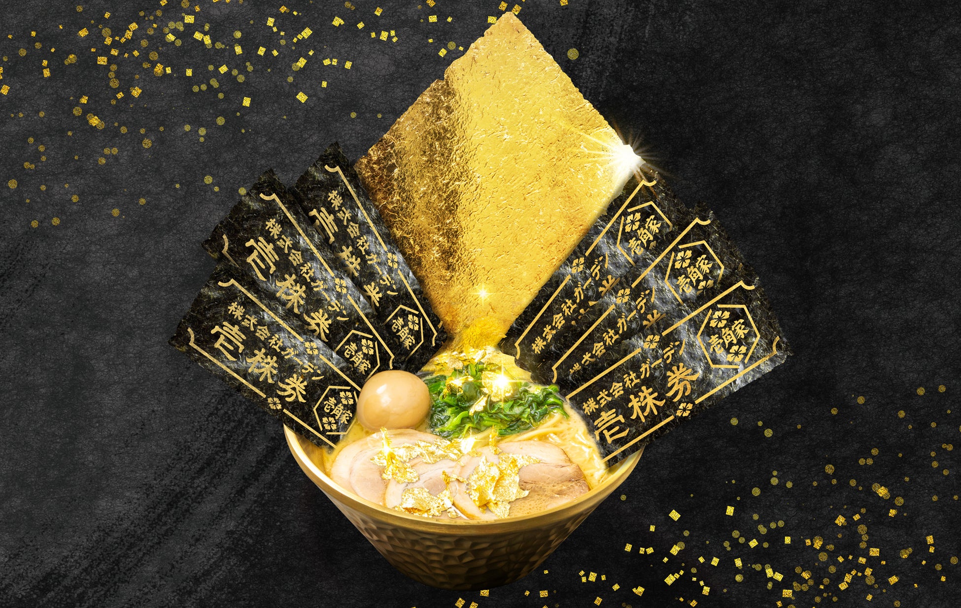 株式会社ガーデン上場記念!金のラーメンで開運祈願!“金”の器に“金箔”をまぶし、”金の壱株券”をトッピングした『壱角千金”株”ラーメン』2025年7月14日(月)より販売開始