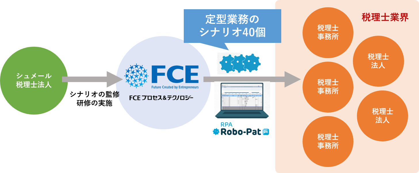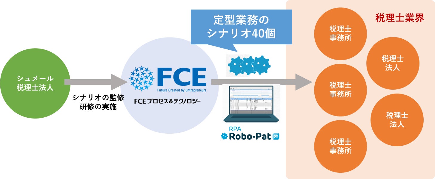 第1弾は慢性的な人手不足を抱える税理士業界に対して、提供を開始します。具体的には、シュメール税理士法人監修のもと「電子申告」「申告書作成」「所得税確定申告」など、ほぼすべての税理士業務で活用できるシナリオを40ほど作成し、RPA「ロボパットDX」とのパッケージにてご提供してまいります。本スキームは当社の直販だけでなく、希望する販売代理店にも提供して営業促進に使用していく予定です。また、シュメール税理士法人には販売するための教育研修も実施いただく予定です。ツールを提供して終わりではなく、業務自動化によって本来の目的である企業のDX化、生産性向上を実現できるようサポートできる体制も整えてまいります。