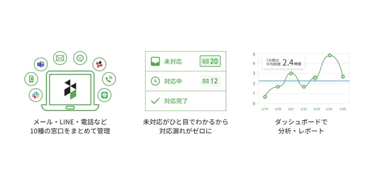 『Re:lation』は、複数の問い合わせ窓口を一元管理し、チームで共有できる顧客対応クラウドです。メール、電話、チャット、LINEなど多様化するコミュニケーションサービスを一つの画面で扱えるため、顧客との接点が増え複雑になった問い合わせを簡単に一元管理できます。さらに、二重返信や対応漏れを防止するステータス管理やWチェックが簡単にできる承認機能といった、複数人での問い合わせ対応で生じがちな様々な課題を解決する機能を備えています。テレワークなど多様な働き方にも対応し、業務効率化と可視化を実現して人材教育にも貢献します。