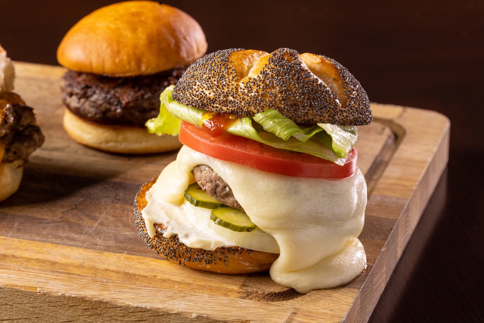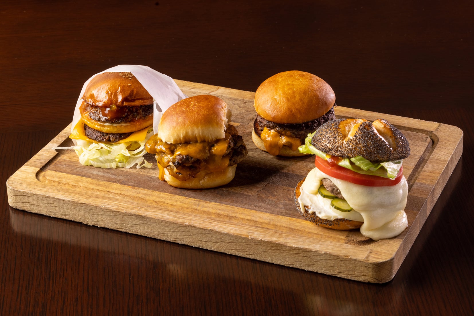 1950年代にミネソタで生み出されたハンバーガー。それまでのチーズをパティの上に乗せていたチーズバーガーとは異なり、パティの中にチーズを入れて焼き上げるのが特徴です。パティの中でトロっと溶けたチェダーチーズが肉汁と混ざり、絶妙なハーモニーを織りなします。