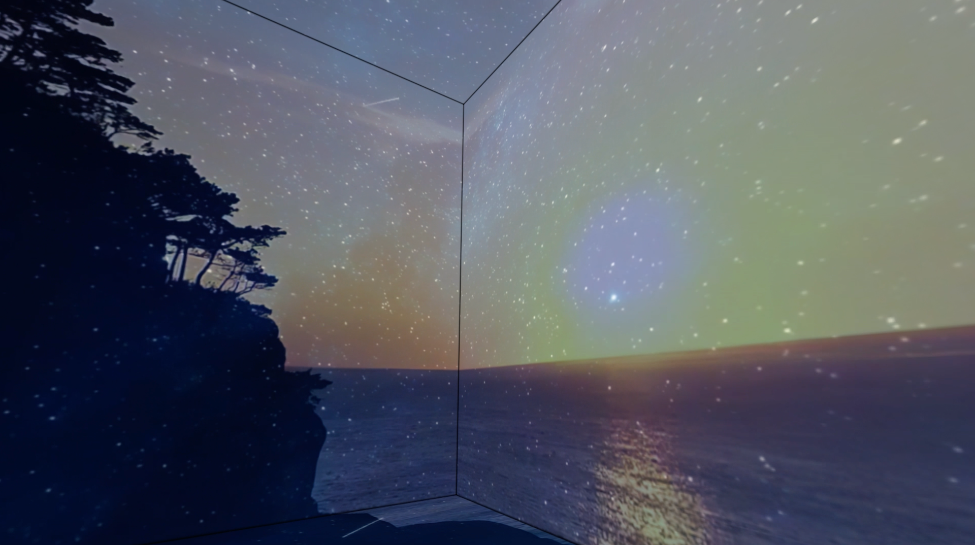 海の中も、山も、見上げる空も、星空の中も、立方4メートルのLEDで圧倒的な没入感を目指す360度コンテンツが体験できます。