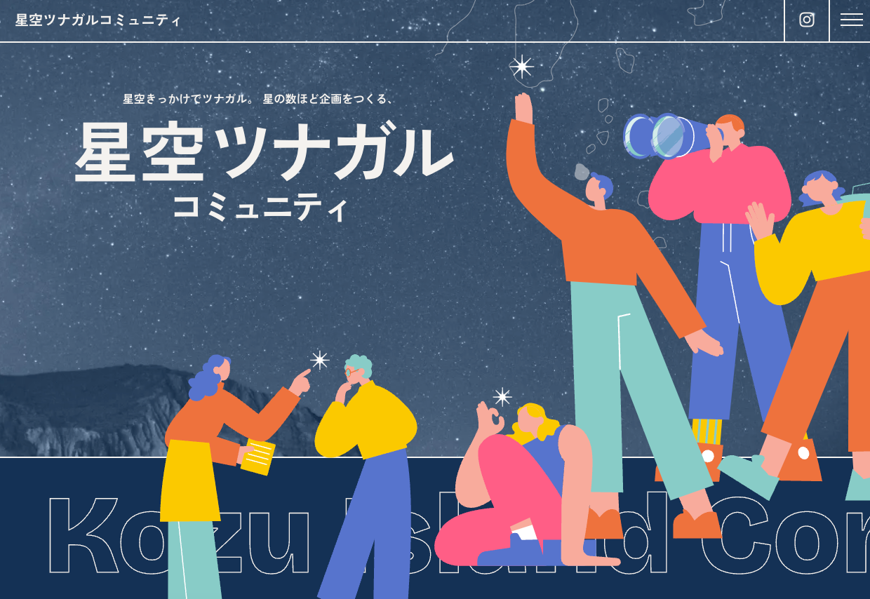 日本中の星空好きとツナガルことをめざし、まずは、ちょっとでも星空好きな人たちとリアルイベントやデジタル上での交流から取り組みます。星空が好きな人・全国の星空関連の事業者・新しい体験や観光に興味がある人たち・もちろん島民とコラボレーションを生み出す共創型のコミュニティを構築していきます。具体的には、①デジタル上のコミュニティに参加する ②リアルにコミュニティイベントに参加する ③企画者としてコミュニティイベントを開催・企画する、となります。