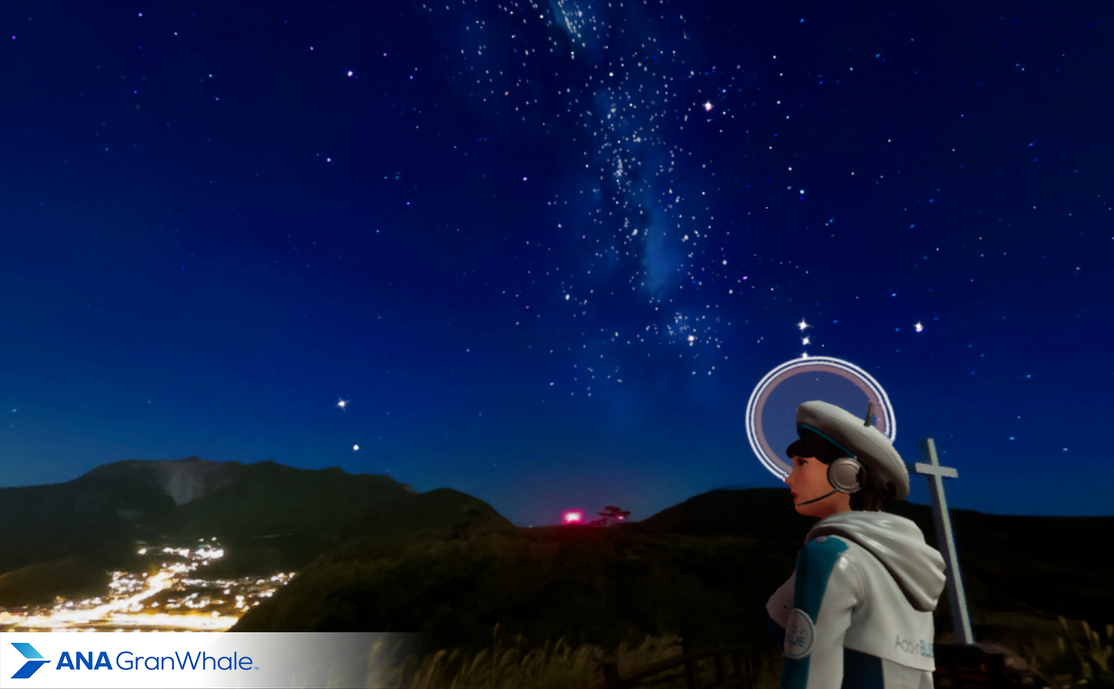 「ANA GranWhale」は、バーチャル空間で現実に近い「旅の入口体験」を提供し、実際にその地を訪れたいと感じて頂けるアプリをめざしています。神津島のバーチャル空間からは実際に神津島へ行くためのリアルな旅の予約をする事も可能です。バーチャルとリアルを繋いだ新しい旅行体験アプリで、神津島の魅力を発信してまいります。