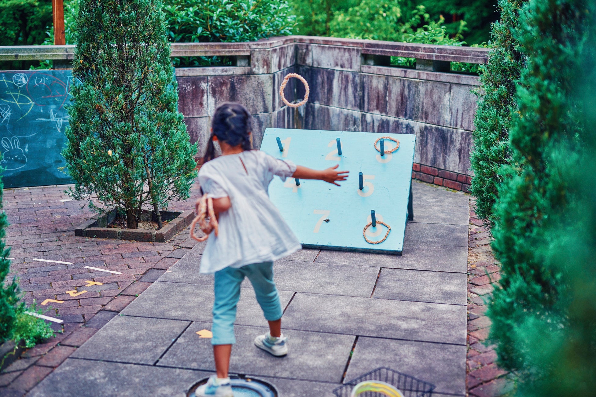 ・輪投げ:点数の書かれた輪投げ台を目掛けて輪を投げ入れよう。得点を競って勝負