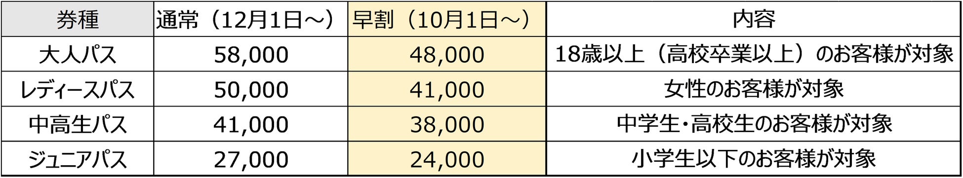 ご利用可能期間:2025-26年ウインターシーズン中(2025年12月6日(土)~2026年4月5(日)予定)