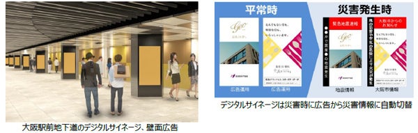 この活動は、大阪駅前地下道をはじめとする梅田1丁目地区の地上・地下の道路空間を有効活用し、歩道上に広告板等を設置して収益活動を行い、その収益を用いて、道路空間を良好に維持するための道路・植栽帯の維持管理業務や、道路空間の利便性向上・にぎわい創出、安心・安全な都市環境の創出といった公的活動業務を実施するという官民連携の取組みで、これにより大阪の玄関口にふさわしい都市空間の形成を目指すものです。