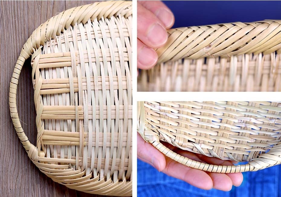 両サイドに施された矢筈巻きの縁巻きが、見た目の美しさと使いやすさを兼ね備えたデザインとなっております。また、スズ竹のやさしい竹肌は、果物や野菜を傷めることなくしっかりと支え、使い心地の良さを実感いただけます。