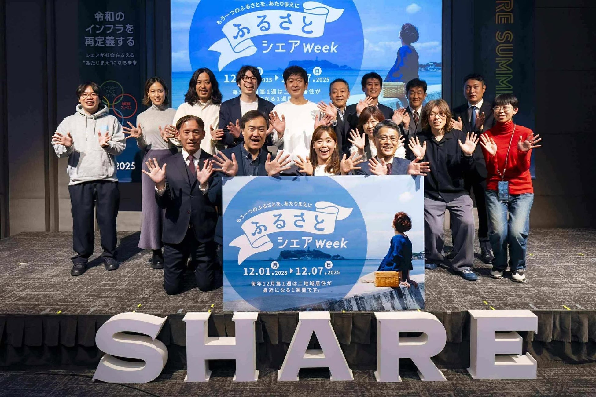 2025年11月25日(火)に開催された一般社団法人シェアリングエコノミー協会主催「SHARE SUMMIT 2025(シェアサミット2025)」にて、衆議院議員 / 二地域居住推進議員連盟 幹事長 古川 康氏、国土交通省 国土政策局長 佐々木 正士郎氏とともに、当社代表取締役近藤はじめ、本取り組みに参画する8つの事業者・行政・自治体が登壇しました。