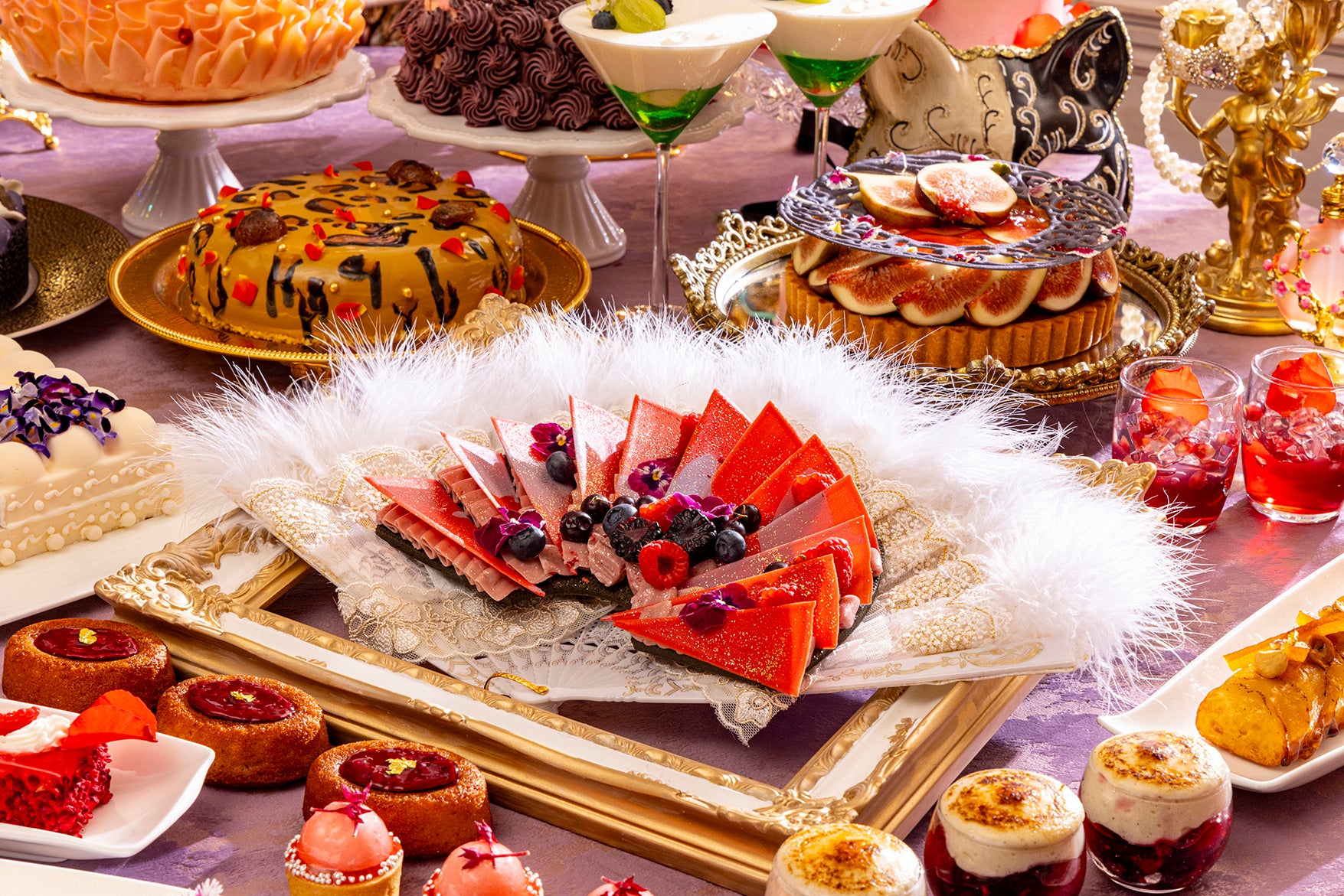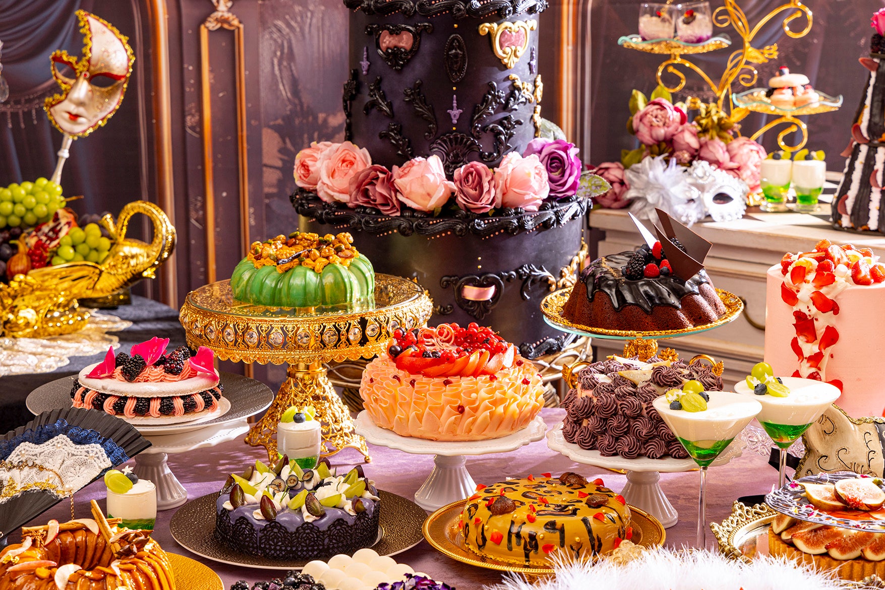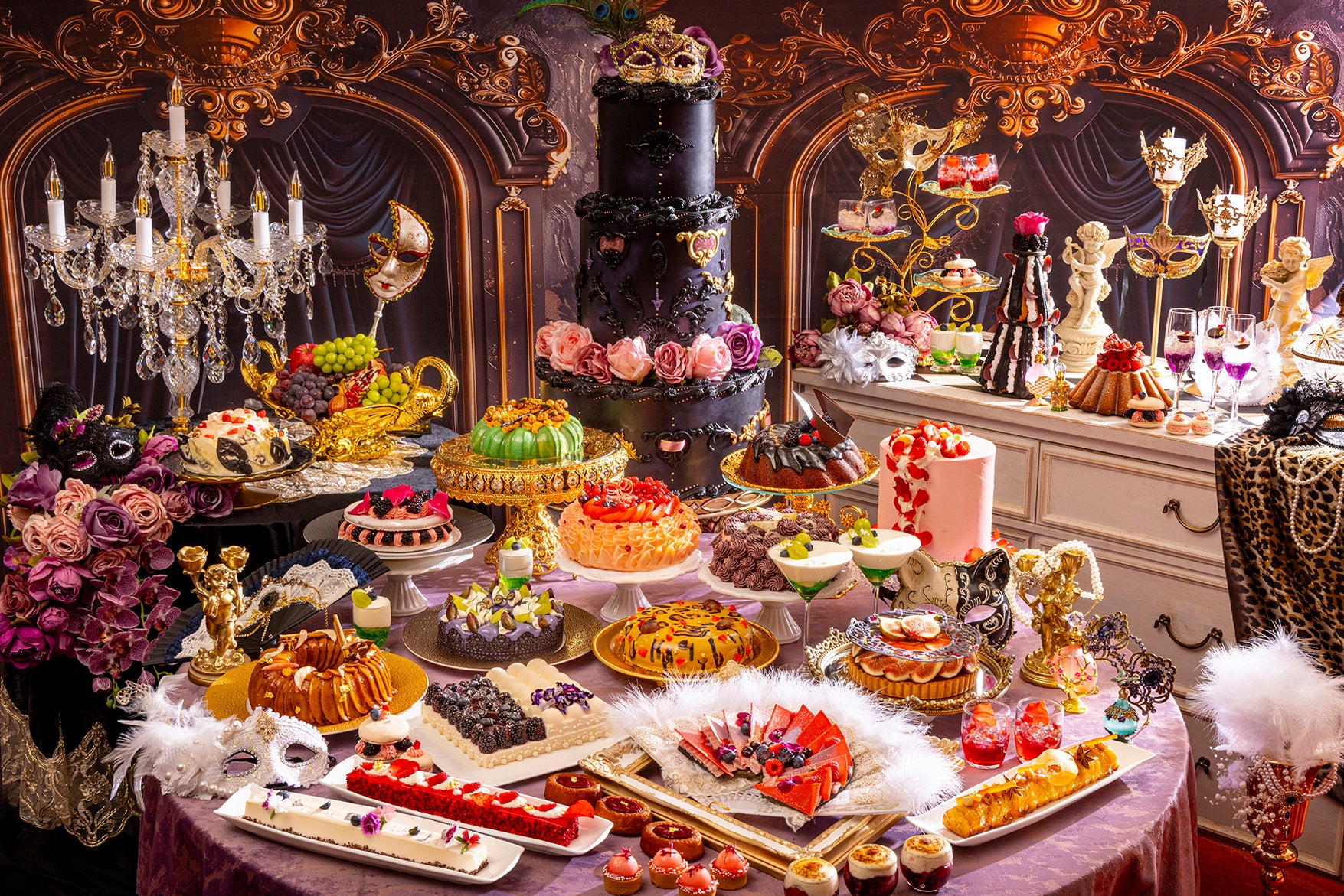 王妃が催す甘く秘めやかな秋の仮面舞踏会がテーマのスイーツビュッフェ。生成AIにより誕生した「オリジナルアバターシェフ」が“王妃の専属シェフ”の座をめぐって繰り広げるスイーツバトルにも注目