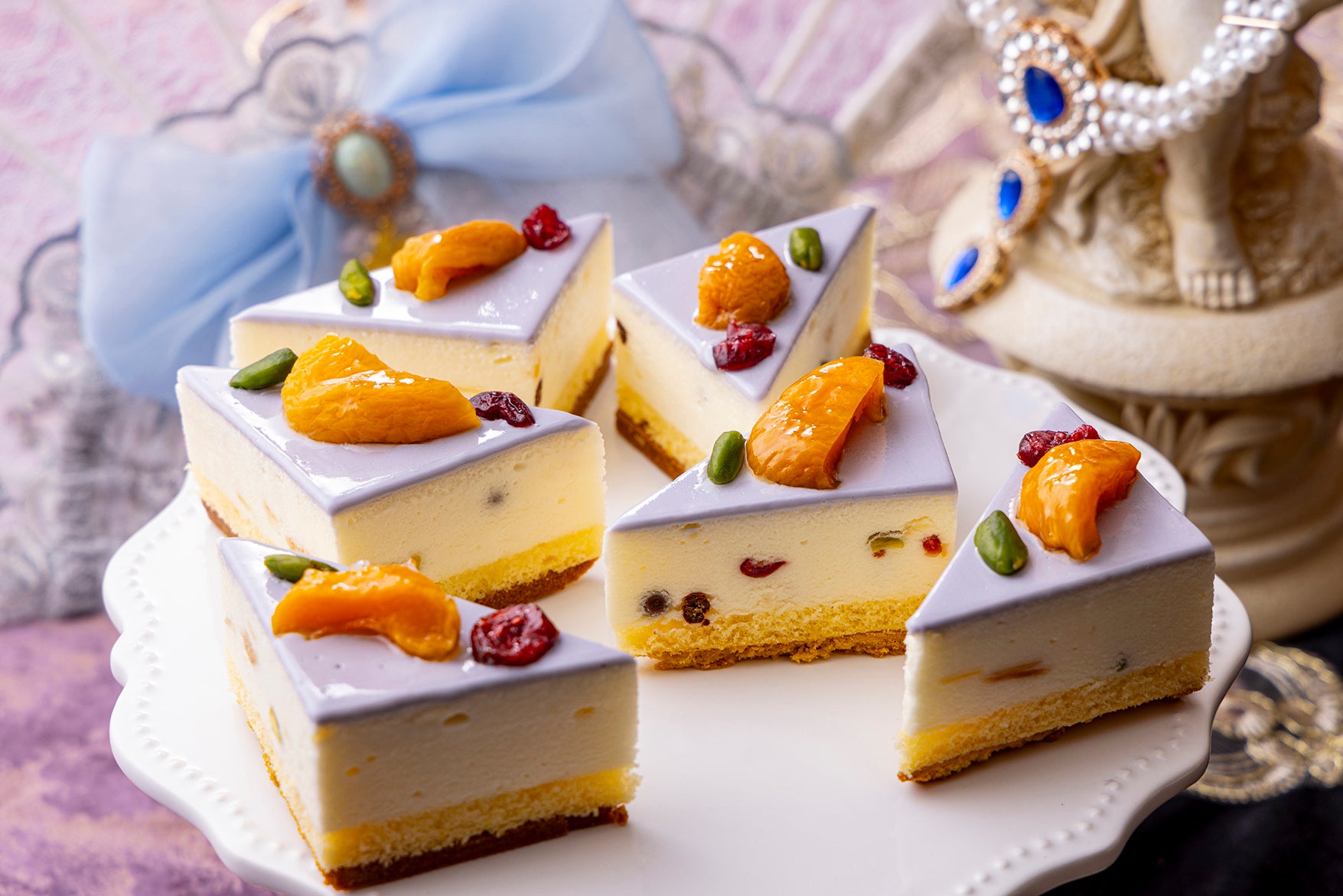 その他にも紅茶風味のパン・ド・ジェンヌをシナモン、クローブ、アニス風味のキャラメルで煮込んだリンゴで包み、ローストした胡桃やドライフルーツを飾った「王妃のお夜食」、フロマージュ生地の中に、ピスタチオやアーモンドスライス、アプリコットやオレンジピールなどのドライフルーツとクランブルを合わせたカッサータ風スイーツ「ça reste entre nous」など、秘めやかなストーリーを想像しながら味わう秋の美味をお楽しみいただけます。