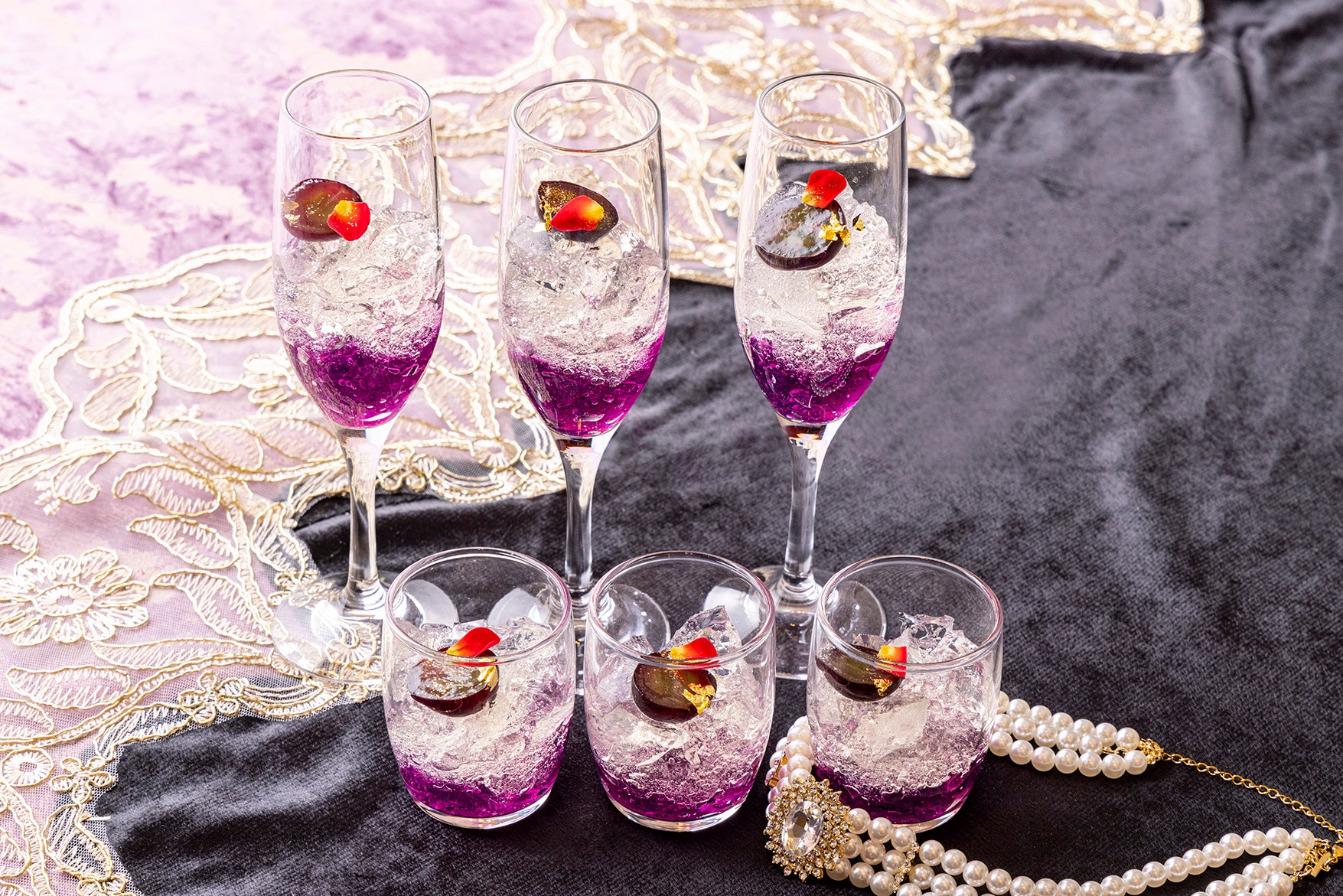 スイーツに加え、お食事も王妃の仮面舞踏会にふさわしい豪華なラインアップをお楽しみいただけます。シェフが目の前で切り分ける「サーロインローストビーフ」に加え、焼き立て「バタークロッフル ブレイズドプルドポーク」はルッコラ、パルメザンチーズを添えてご用意いたします。更にパイ仕立て「プティ・クロックムッシュ ヴァル・オ・ヴァン」、オレンジグレーズと共に味わう「シーフードのテリーヌ」や「シーザーサラダ」など8種類が揃い、スイーツビュッフェとしてはもちろん、遅めのランチとしてもご満足いただける内容となっております。ドリンクは、ドイツの高級紅茶ブランド、ロンネフェルト社が贈る秋に相応しい紅茶10種類を含むセレクションをご用意。定番の「アールグレイ」や「ダージリン」に加え、バターと砂糖をじっくり煮詰めて作るトフィーの香りをブレンドした「ブラックトフィー」、熟したレモンの甘酸っぱさとセージのスパイシーな香りが特徴の「レモンセージ」など、スイーツと合わせてご賞味いただけます。まるで絵画のように美しいマリー・アントワネットの世界観に触れながら、優雅な気持ちを高揚させるスイーツ達に囲まれる秋のスイーツタイムを心行くまでお楽しみください。