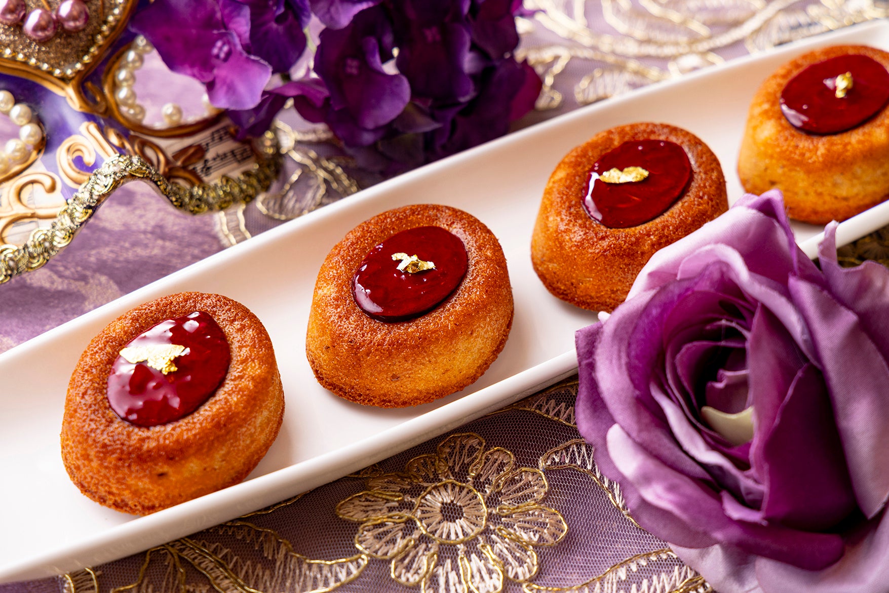 さっぱりといただけるグラススイーツは、巨峰入りラベンダー風味のカシスジュレの上にシャンパンゼリーを合わせた「アメティスト」、ざくろとライムのジュレ「パルファン・ダムール」などをご用意。その他にも焦がしバターのフィナンシェにカシス風味のチョコレートを流した「パンがなければフィナンシェをお食べなさい」や西洋プラム ミラベルのムースとベルガモットのジュレ「パピヨン」など、うっとりするほど美しいスイーツに心躍ります。
