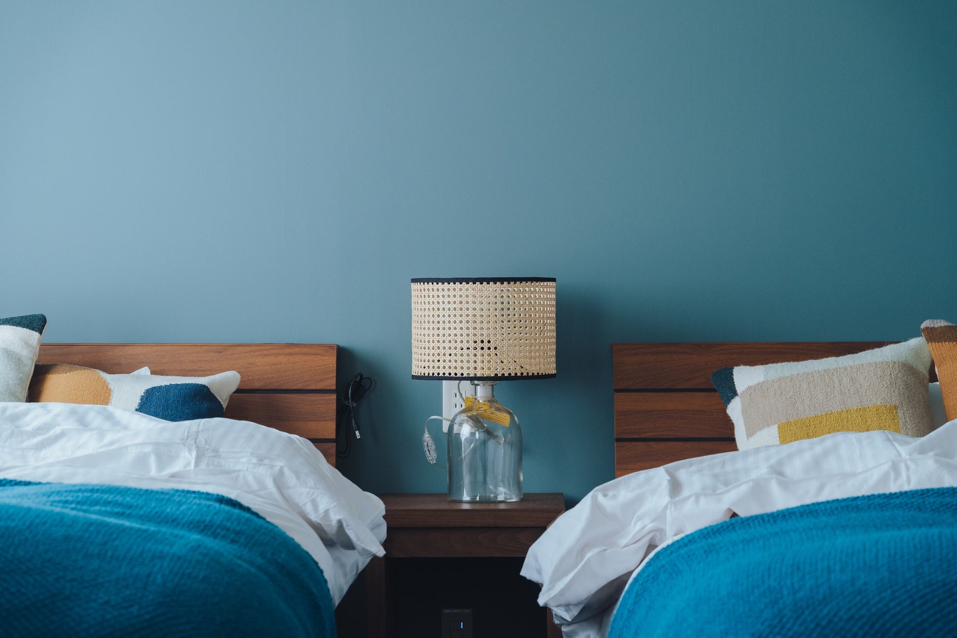 全35部屋の客室は、複数の内装をご用意。自然のあたたかみと瀬戸内の海・空を連想させるブルーをモダンに取り入れたシンプルな客室をはじめ、温かみのあるオレンジ・ブラウン・ホワイトの配色で居心地よく仕上げたナチュラルな客室、落ち着いたグリーンに果実やオリーブを思わせるくすんだイエローやグリーンを差し色で取り入れた客室など、お好みの内装をお選びいただけます。