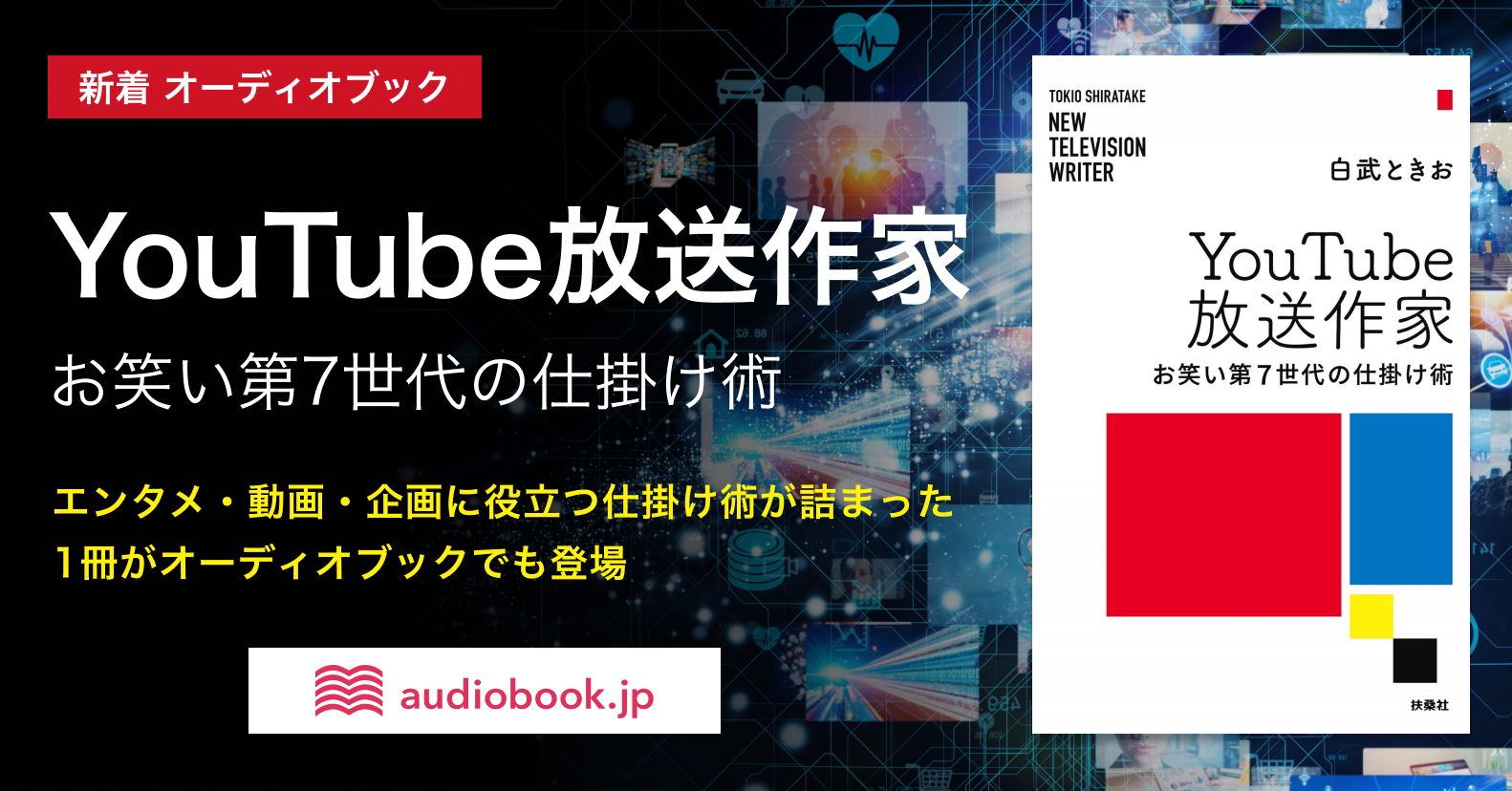 霜降り明星YouTubeチャンネル「しもふりチューブ」を手掛け、『ダウンタウンのガキの使いやあらへんで! 』の最年少作家である白武ときお氏による著書がオーディオブック化されるのは、初の取り組みです。