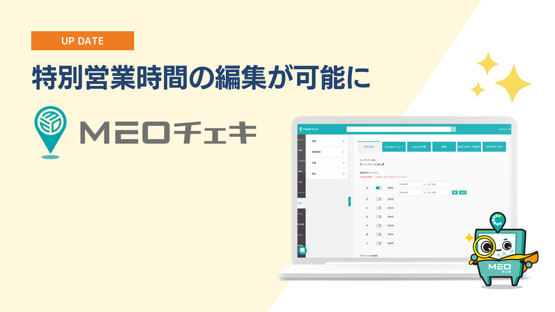 MEOチェキが特別営業時間の編集も可能にアップデート