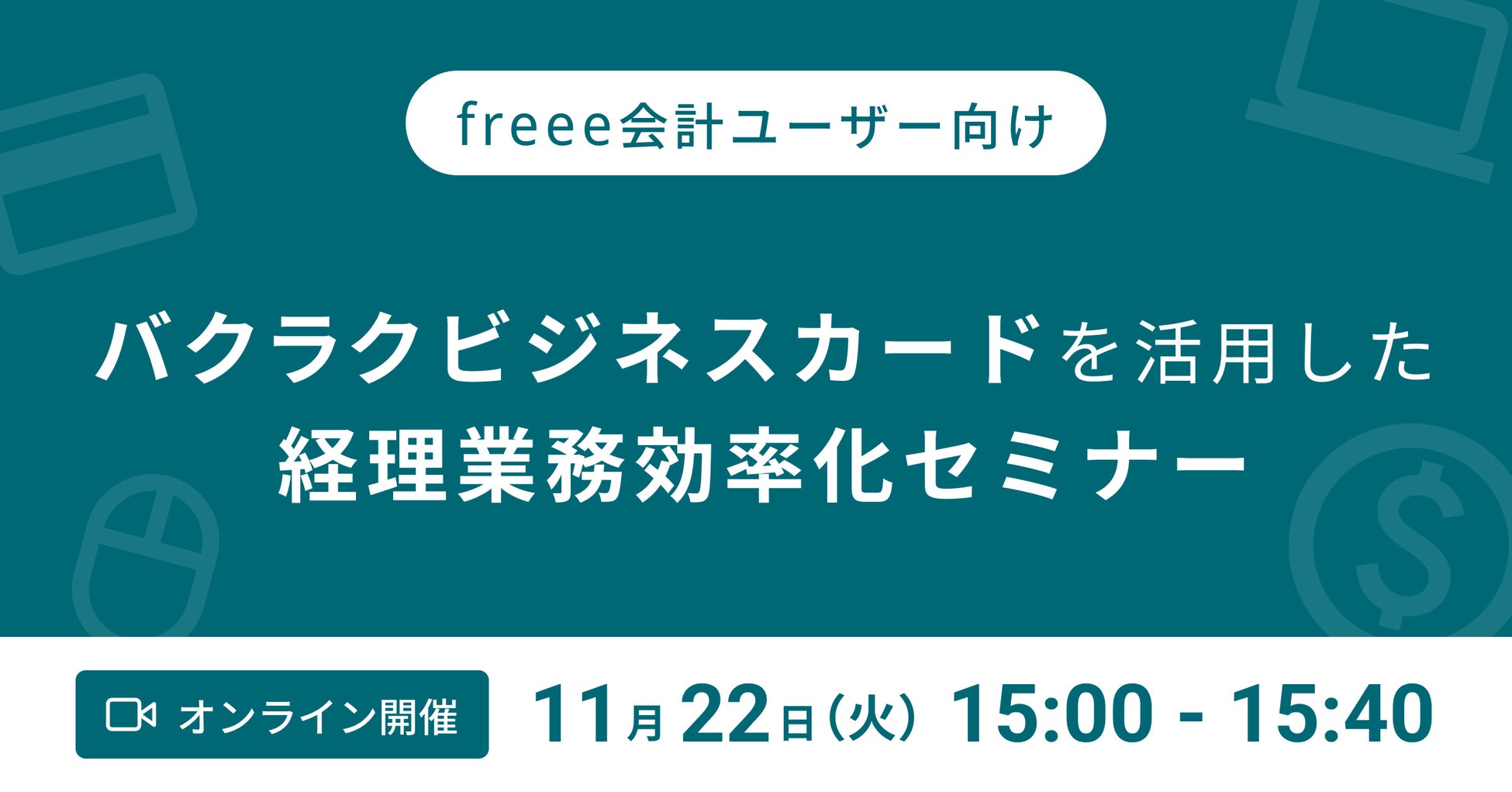 バクラクビジネスカード、freee会計ユーザー向け・カードを活用した経理業務効率化セミナーを開催(11/22@オンライン)