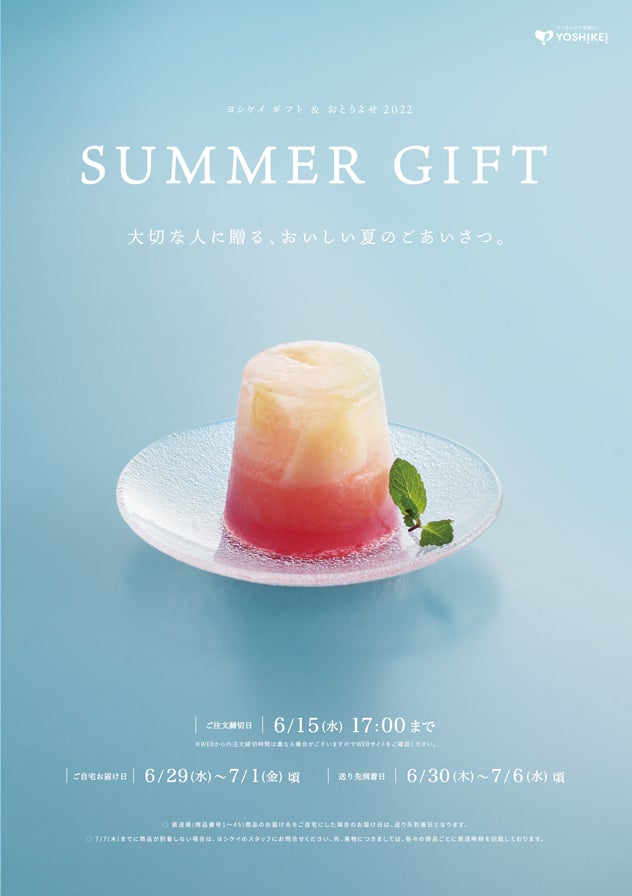 「つくる人から笑顔に。」をテーマに全国でミールキット(食材)宅配サービスを提供するヨシケイグループ(本部所在地:静岡県静岡市 / 代表取締役:井野口 雄一)は、6月15日(水)までのご注文にて「SUMMER GIFT 大切な人に贈る、おいしい夏のごあいさつ。」企画を実施いたします。