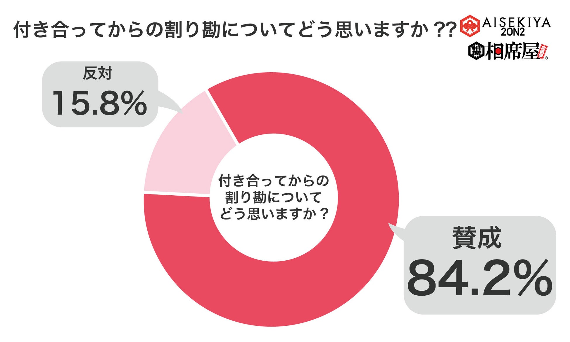 Z世代の男女538人に「付き合う前の割り勘についてどう思いますか?」という質問をしたところ、77.9%が賛成と回答しました。また、「付き合ってからの割り勘についてどう思いますか?」という質問をしたところ、84.2%が賛成と回答しました。