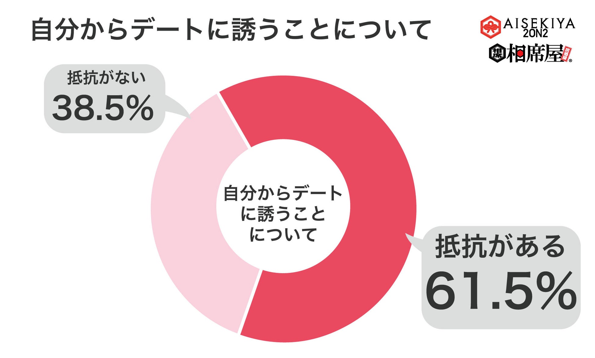 Z世代の男女538人に「気になる人に自分からメッセージを送ることについて抵抗はありますか?」、「気になる人に自分からデートに誘うことについて抵抗はありますか?」とそれぞれ質問したところ、52.4%が「気になる人に自分からメッセージを送ることについて抵抗がある」、61.5%が「気になる人に自分からデートに誘うことについて抵抗はある」と回答しました。