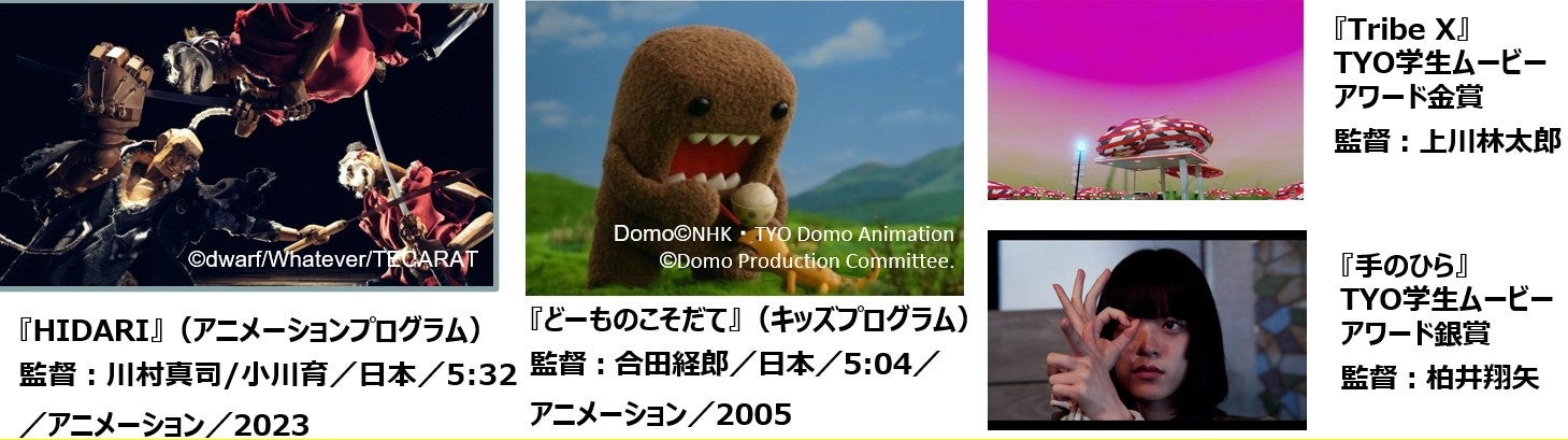 アニメーションスタジオ「ドワーフ」による作品と、「TYO学生ムービーアワード」の第3回金賞・銀賞作品を特別招待作品として上映・配信するほか、特設ページで同グループが取り組む若手クリエイター向け情報をご紹介いたします。