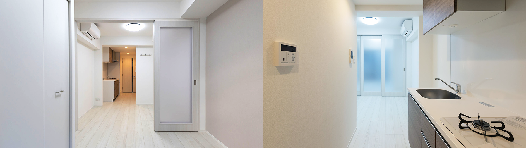 間取りは、部屋が間仕切りされた1DKタイプ18戸で構成され、「テレワーク」の需要にも対応可能です。外観はベージュの外壁にバルコニーのガラスパネルが映えるデザイン性の高い造りとなっており、オートロック、防犯カメラ、TVモニター付インターホン、浴室乾燥機、宅配ボックスやメールボックス、追い炊き機能、インターネット無料、専用ごみ置き場など、設備が充実した物件となっています。