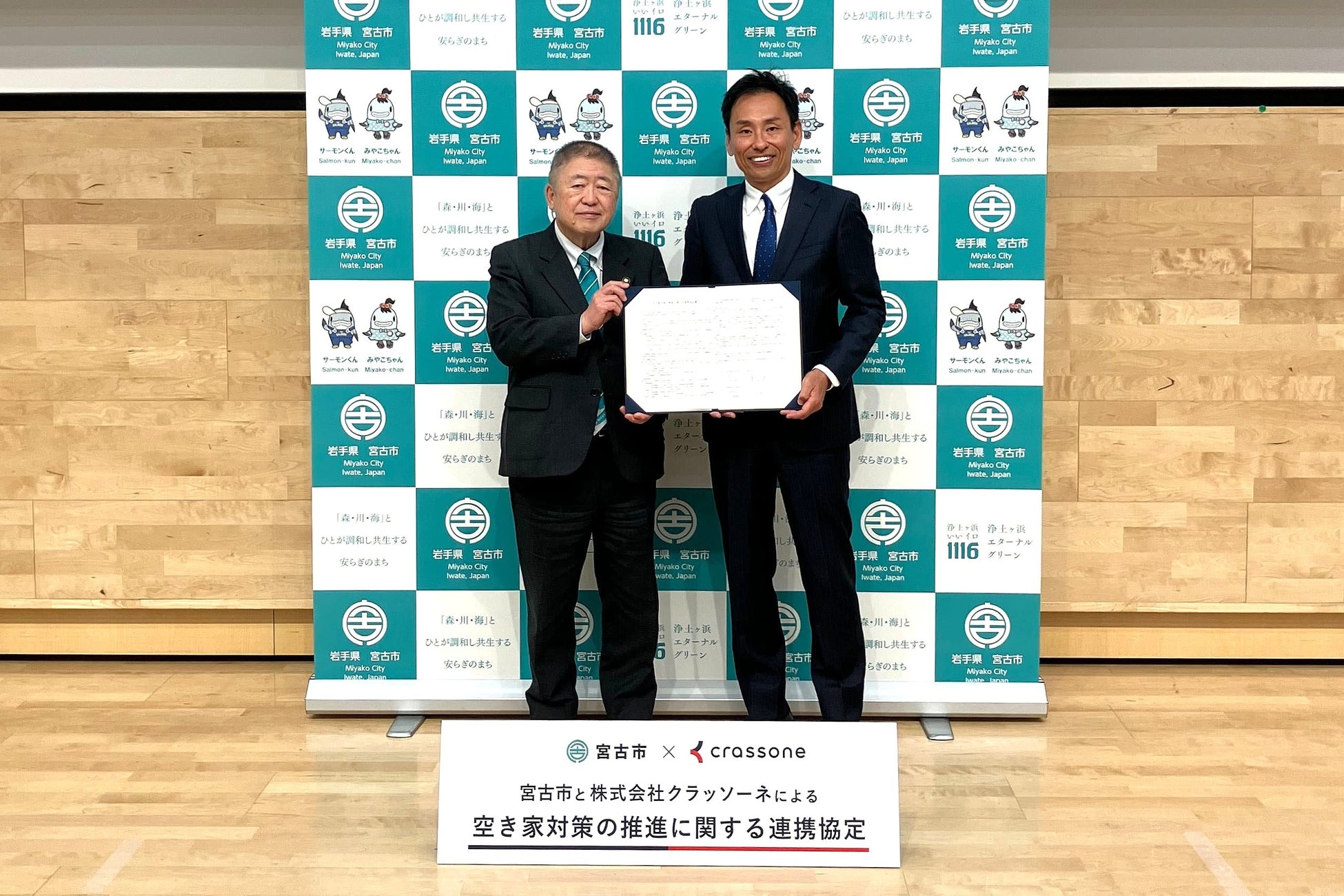 解体工事DXプラットフォーム「クラッソーネ」を運営する株式会社クラッソーネ(愛知県名古屋市、代表取締役CEO:川口 哲平、以下「当社」)は、岩手県宮古市(以下、「宮古市」)と「空き家対策の推進に関する連携協定」を締結いたしました。昨今、全国的にも社会課題となっている空き家問題への対策として、宮古市の空き家除却を推進することで、安全安心なまちづくりを目指します。また本締結で、当社の自治体連携の実績は112自治体(行政運営の団体含む)となりました。