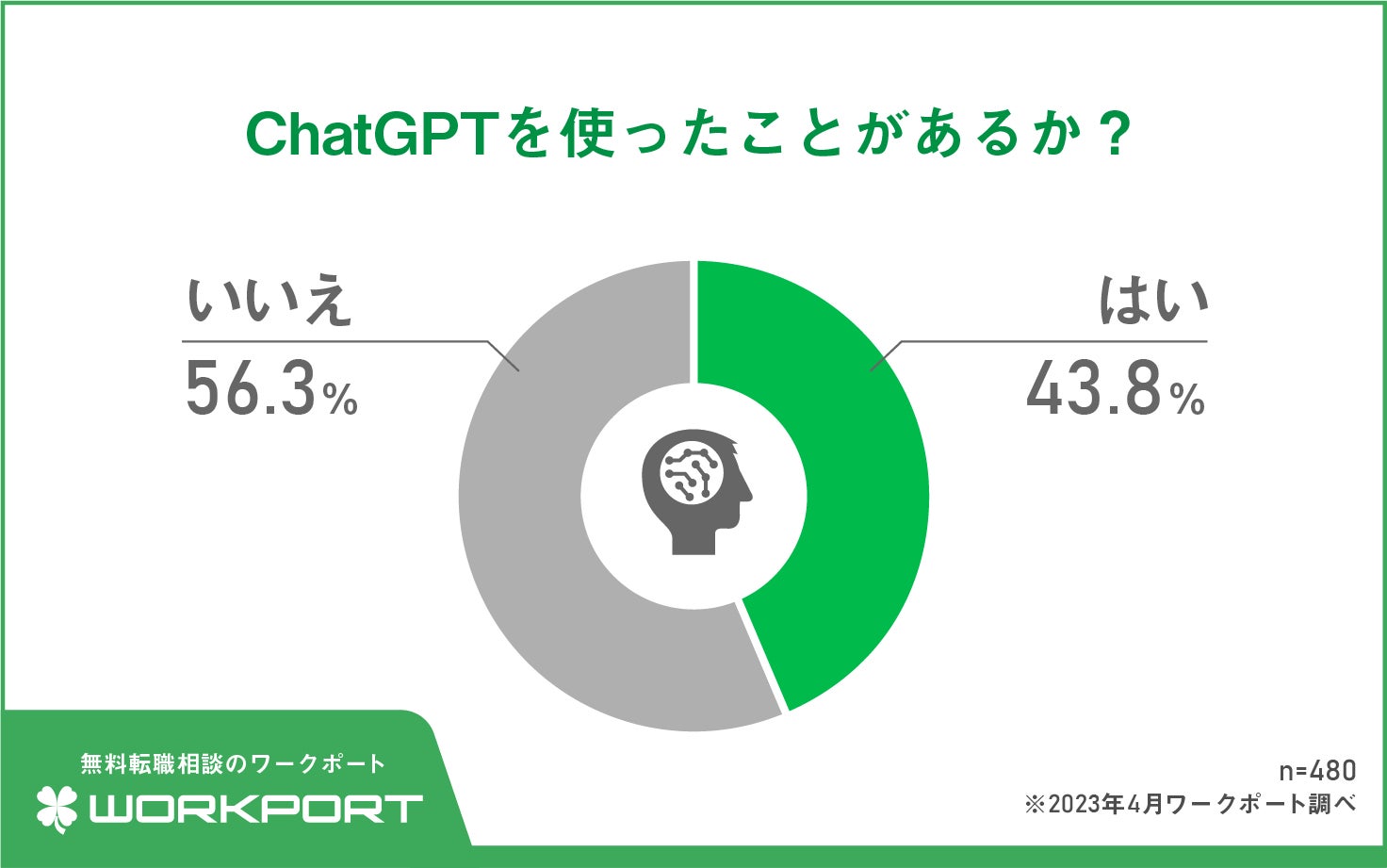 【ChatGPTの利用経験率】ChatGPTを使ったことがある人は43.8% 普及も進みつつあるようす